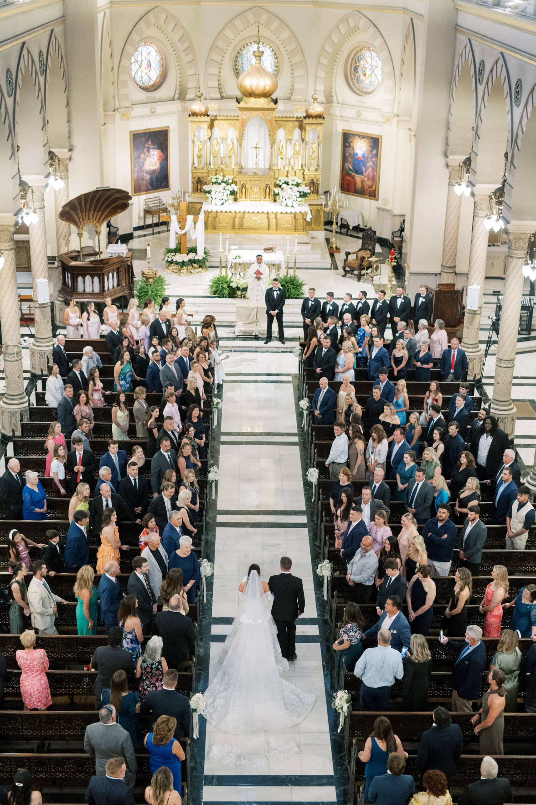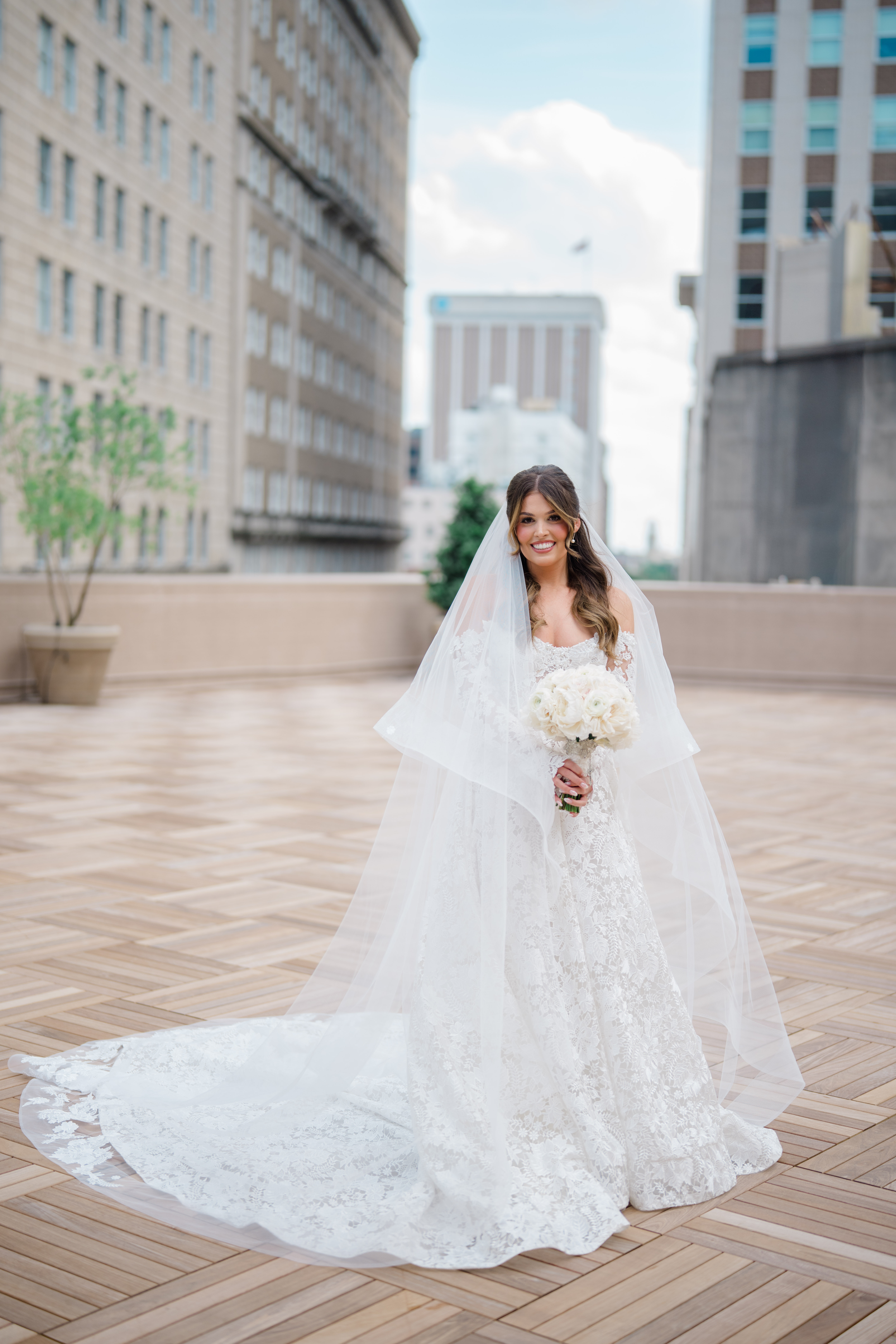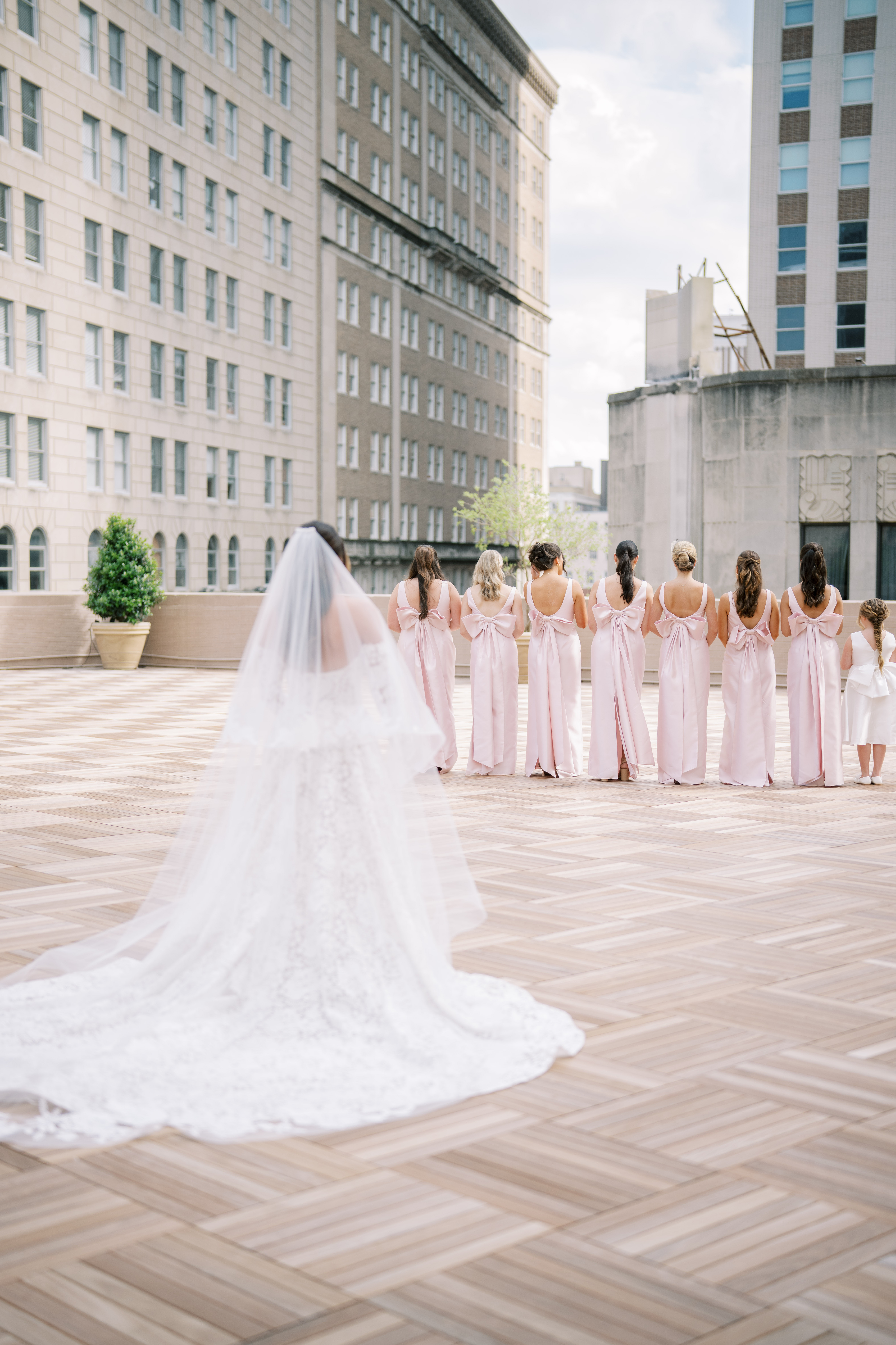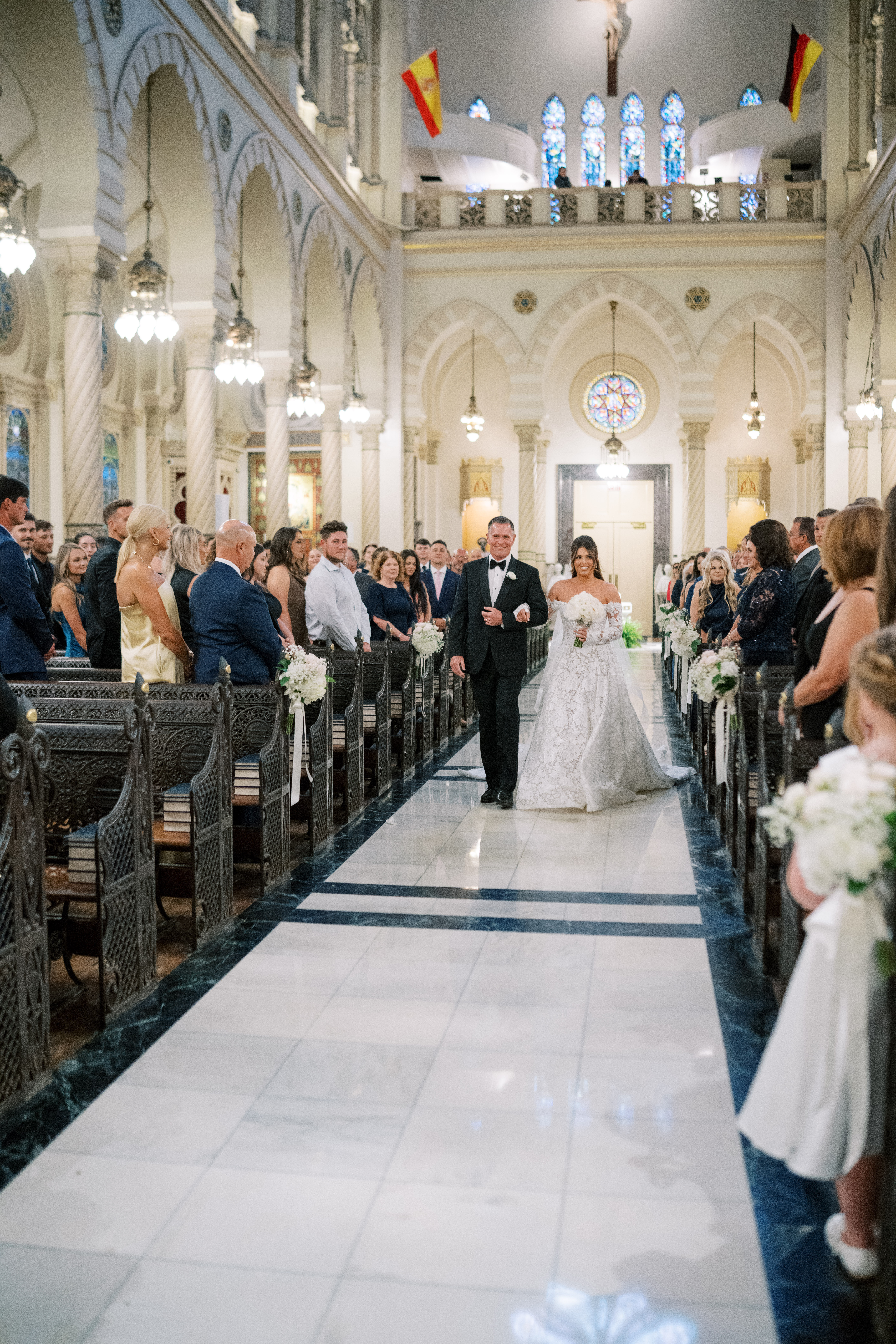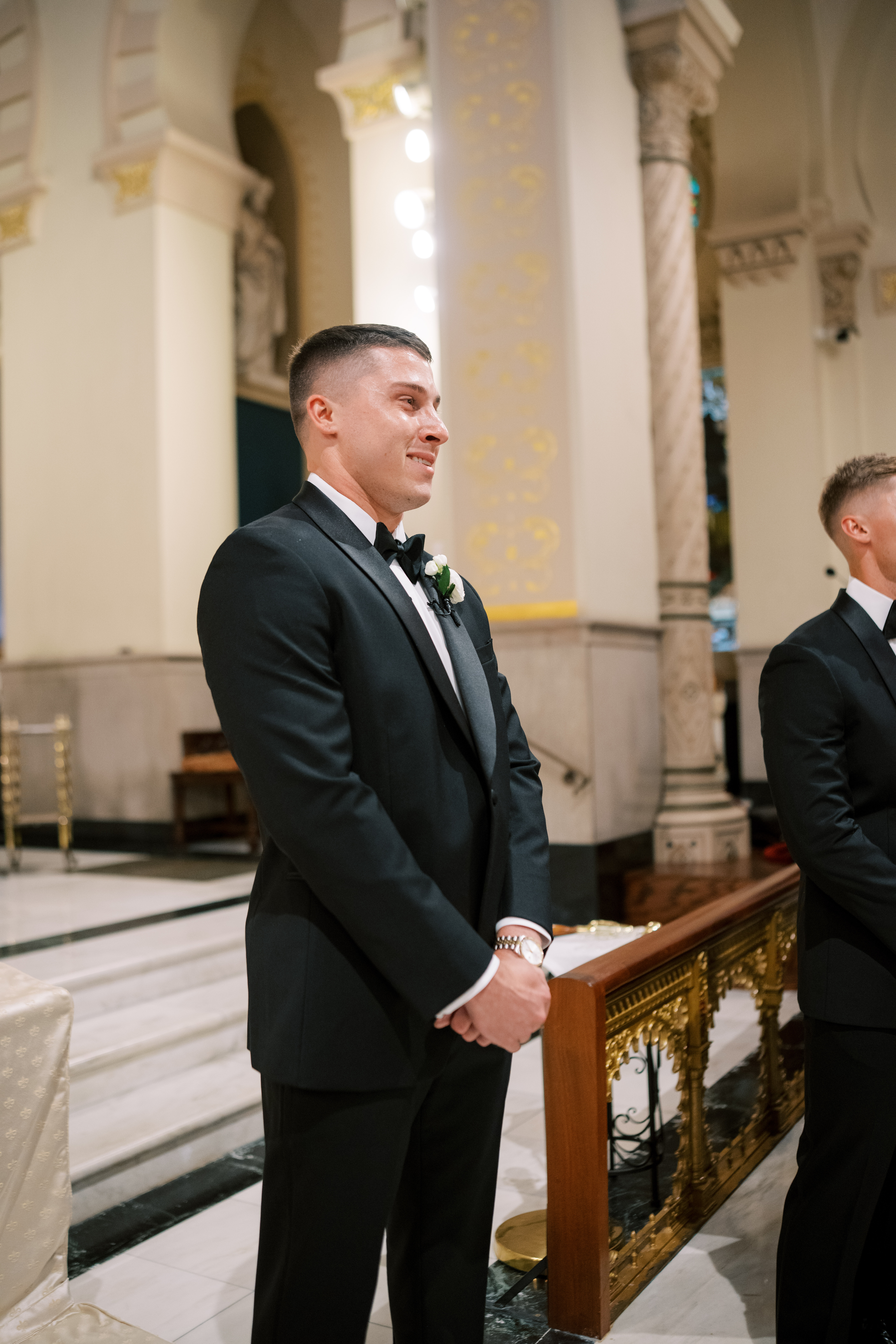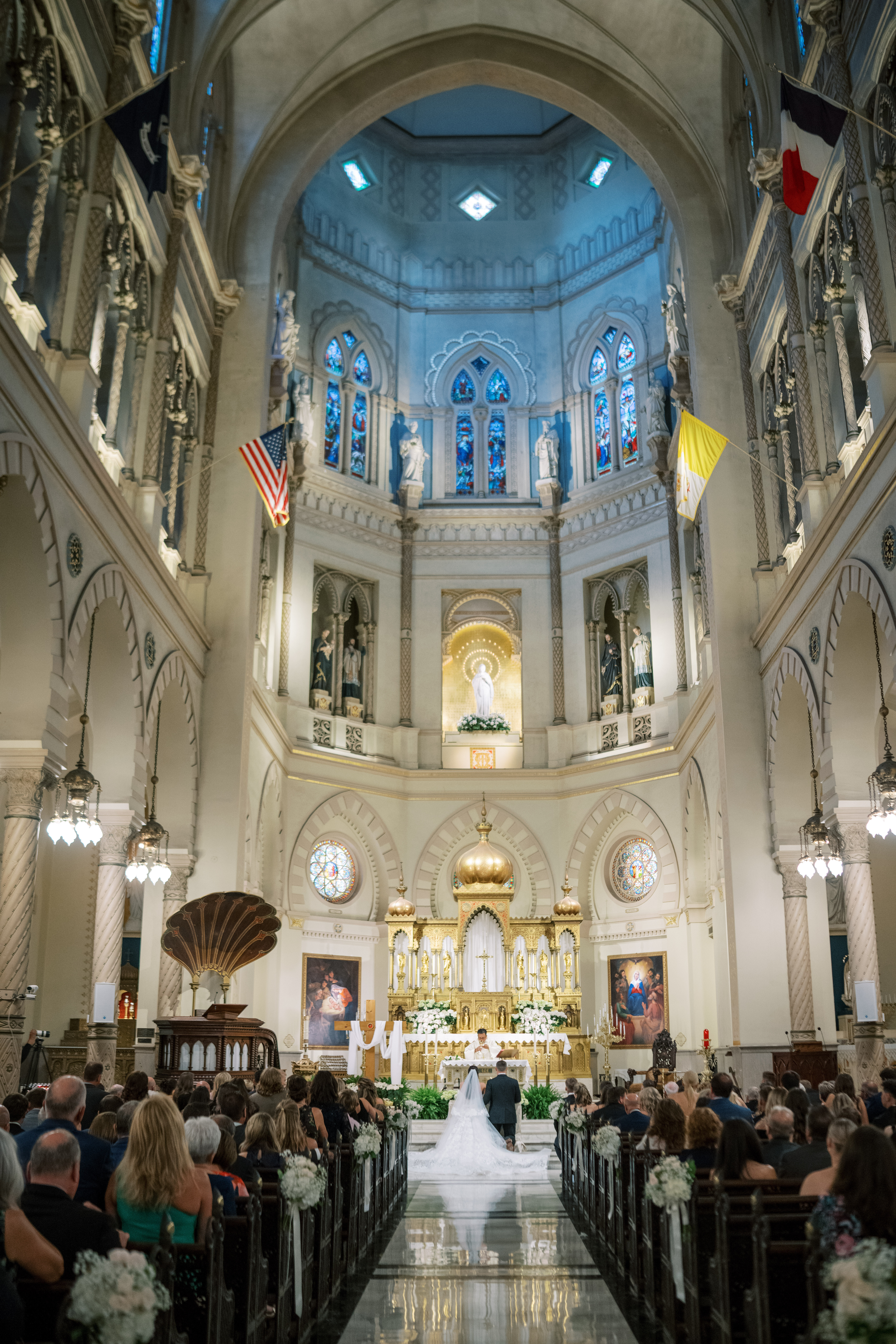 VENUE + BAKERY + CATERER: The Roosevelt | CEREMONY LOCATION: Immaculate Conception Jesuit Church | OFFICIANT: Father Alex | REHEARSAL DINNER LOCATION: Arnaud’s | AFTER PARTY VENUE: Double Dealer | BRIDAL GOWN: Berta | BRIDESMAIDS’ GOWNS: Alfred Sung, London | PHOTOGRAPHER + VIDEOGRAPHER: Brooke Boyd Photo & Films | CEREMONY MUSIC: Immaculate Conception Musicians | RECEPTION ENTERTAINMENT: The Mixed Nuts | SECOND LINE BAND: Kinfolk Brass Band | AFTER PARTY DJ: Oh2 Entertainment, llc | HAIR + MAKEUP: Megan Adams, Hair & Mainstreet Salon + Maddie G MUA | HONEYMOON: Antigua | WEDDING PLANNER/DESIGNER: Amanda Price Events | DECOR RENTALS: Ad Event Group + Distressed Rentals | LINEN RENTALS: BJJ Latavola + Nuage Designs | CANDLE DECOR/LIGHTING: Radiant Rentals NOLA | AFTER PARTY CATERER: Pigéon Catering & Events | SECOND LINE BAR SERVICE: Bourbon Bubbly & Brew | HOT DOG CART: Lucky Dogs | JEWELERS: Béjé, engagement ring + Ramsey’s Diamonds, Bride’s custom wedding band (made with diamonds from her mother’s ring) + Jared, Groom’s wedding band | LIVE PAINTER: Torregrossa Fine Art | PHOTO BOOTH: Boogie Booth | INVITATIONS: Dogwood Blossom