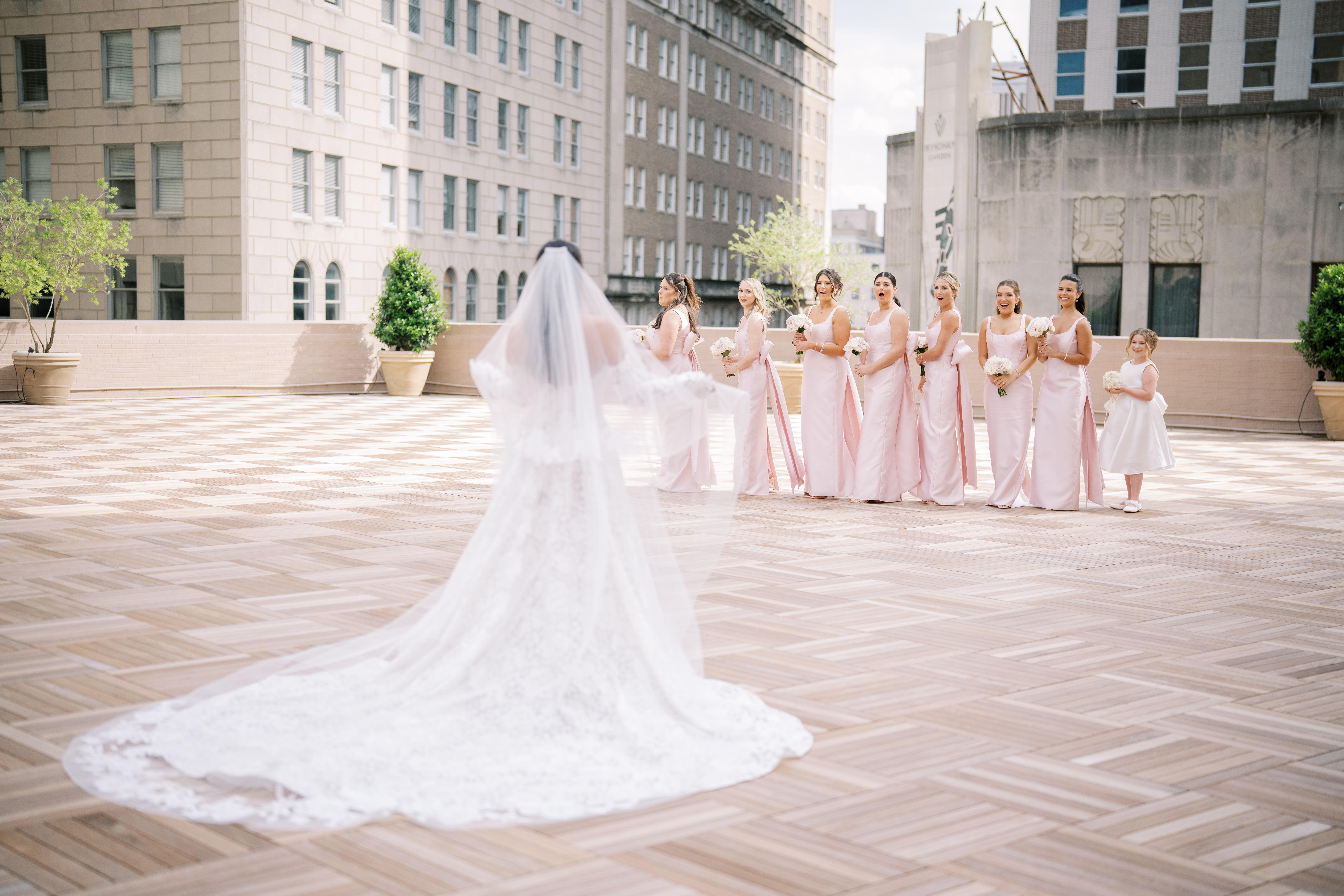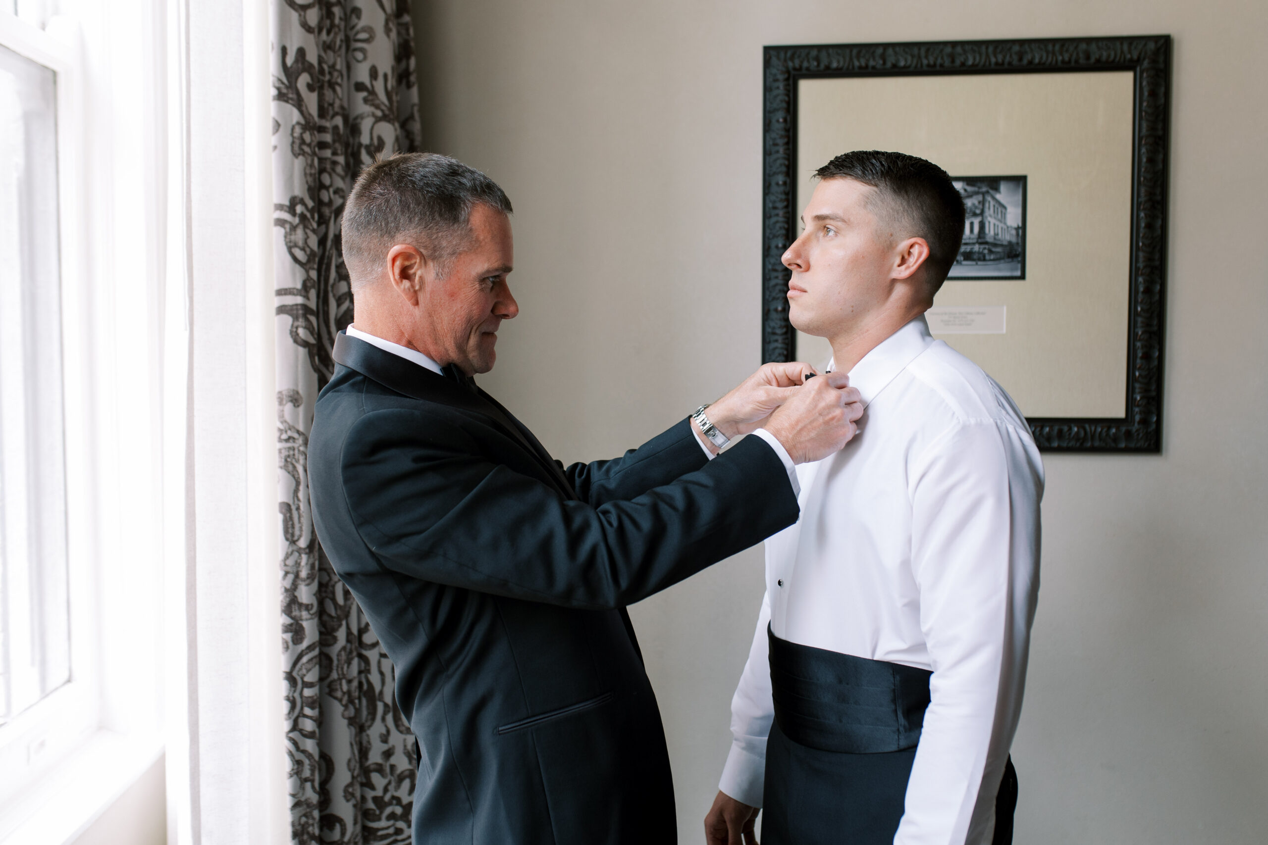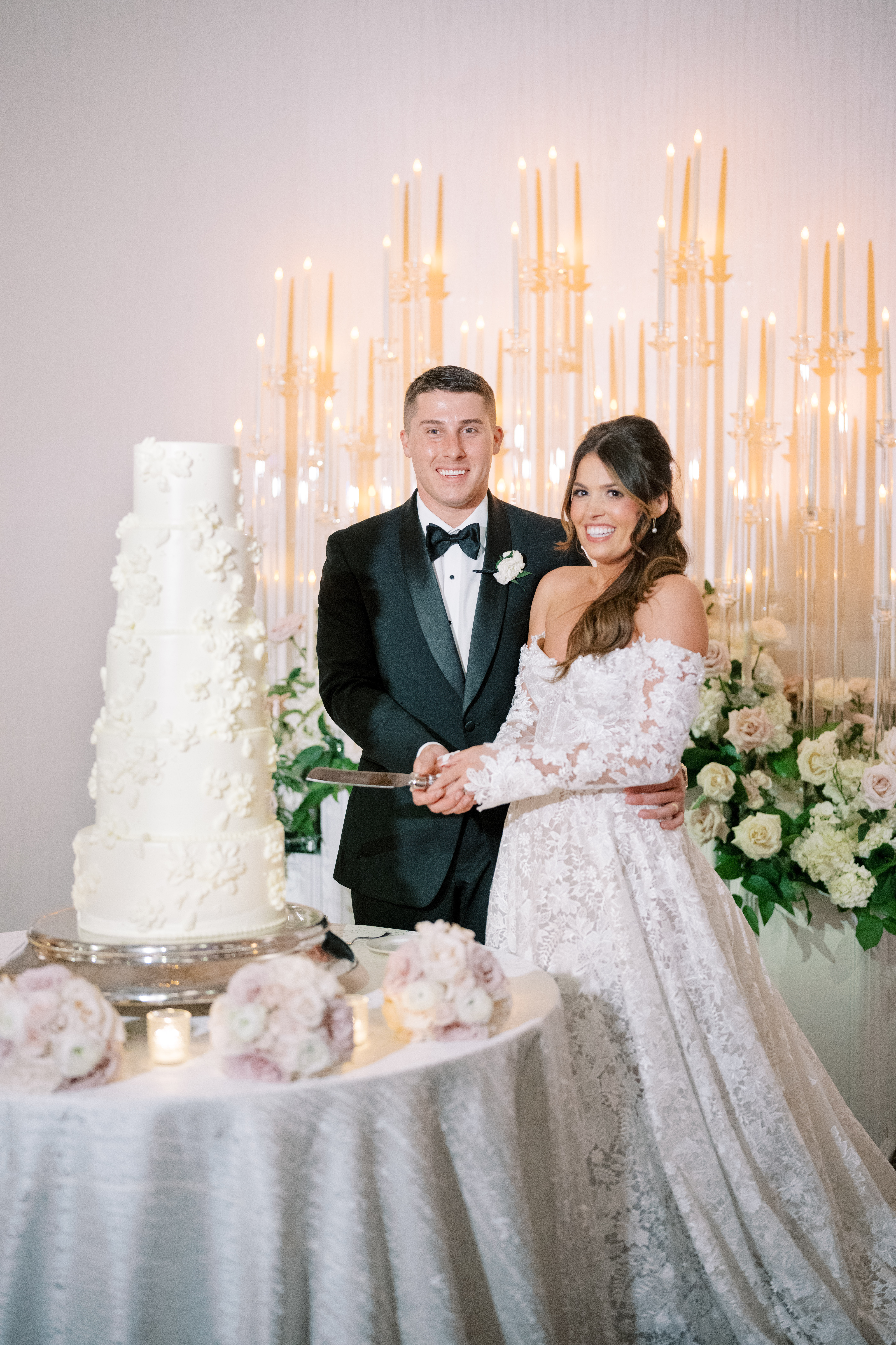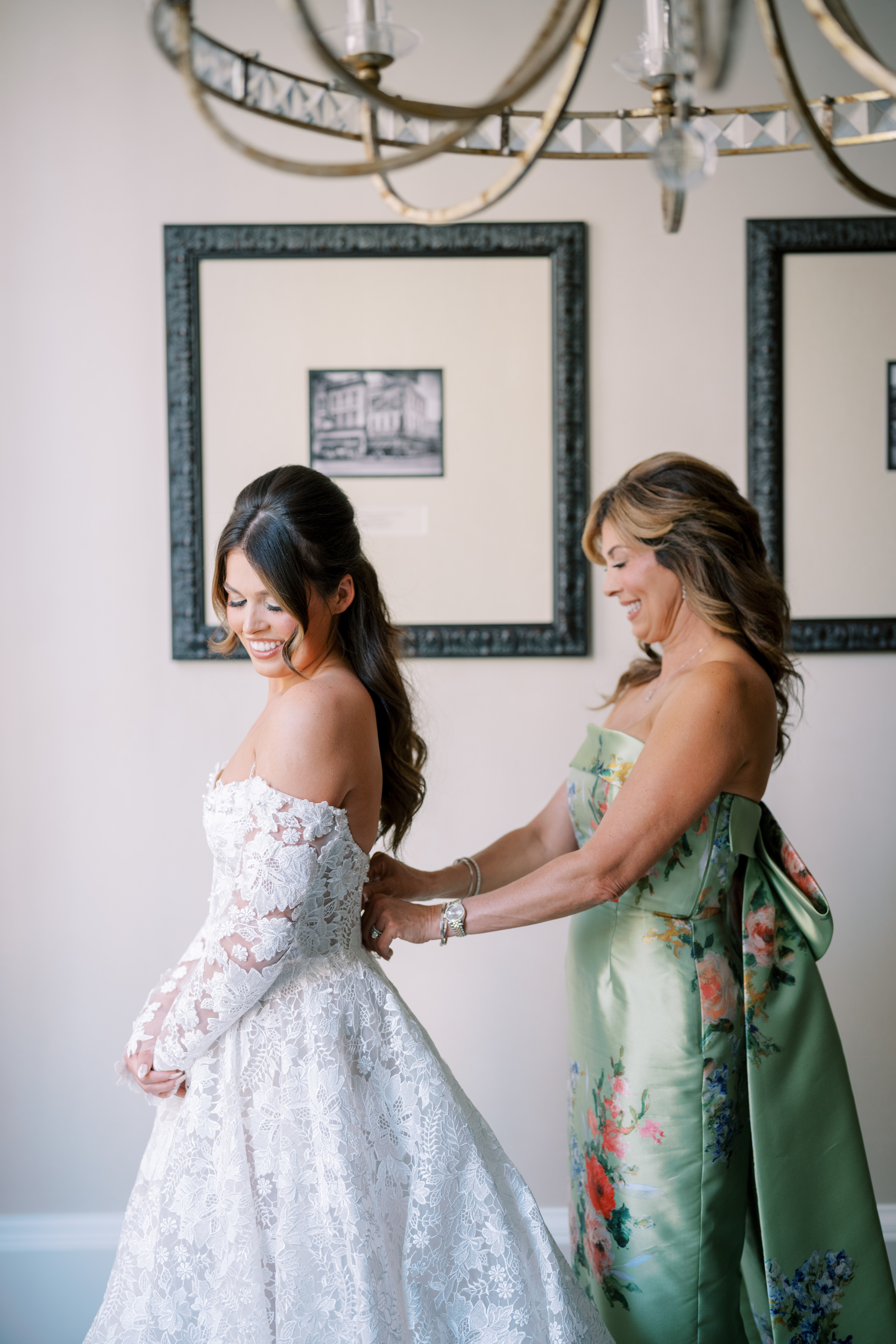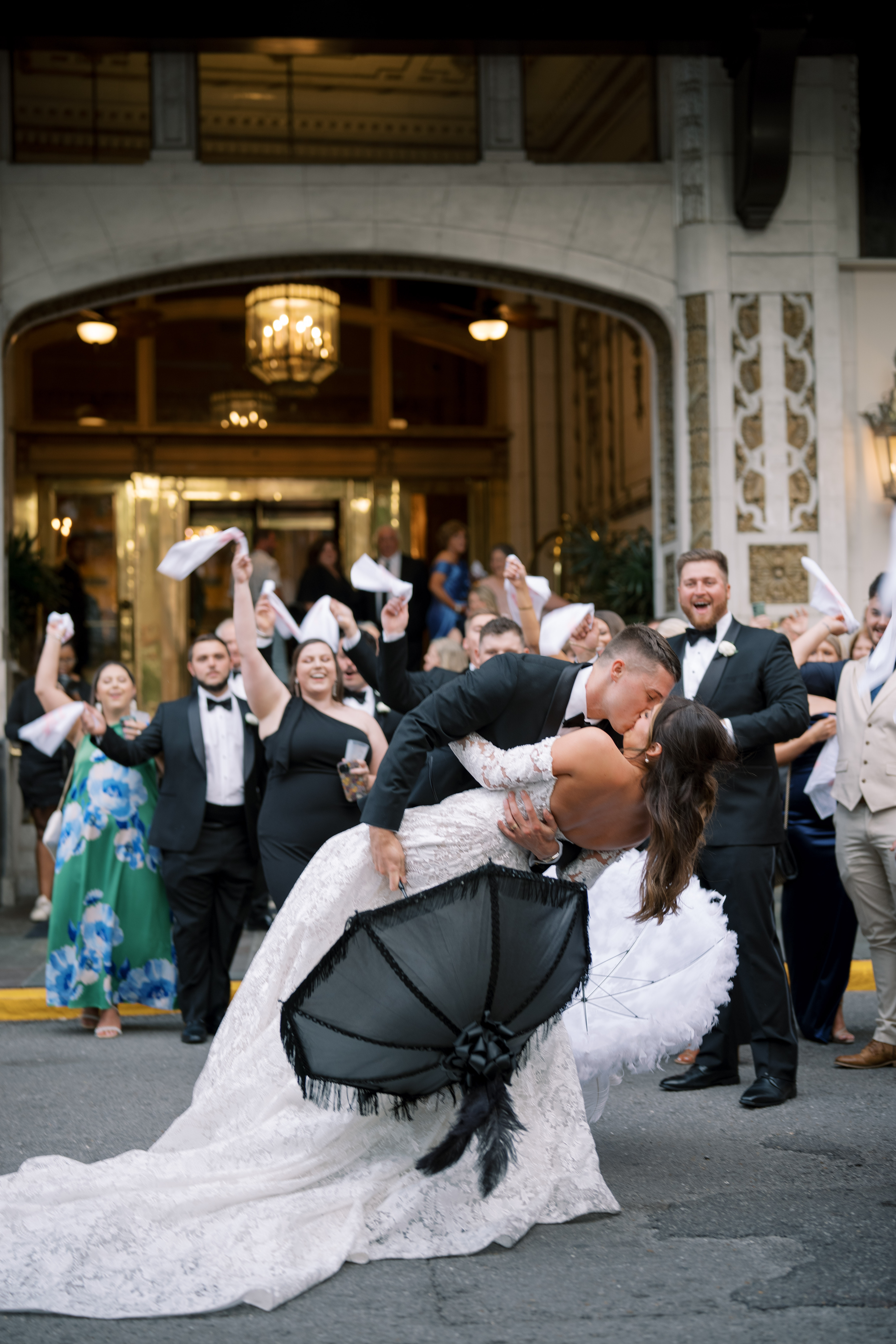 VENUE + BAKERY + CATERER: The Roosevelt | CEREMONY LOCATION: Immaculate Conception Jesuit Church | OFFICIANT: Father Alex | REHEARSAL DINNER LOCATION: Arnaud’s | AFTER PARTY VENUE: Double Dealer | BRIDAL GOWN: Berta | BRIDESMAIDS’ GOWNS: Alfred Sung, London | PHOTOGRAPHER + VIDEOGRAPHER: Brooke Boyd Photo & Films | CEREMONY MUSIC: Immaculate Conception Musicians | RECEPTION ENTERTAINMENT: The Mixed Nuts | SECOND LINE BAND: Kinfolk Brass Band | AFTER PARTY DJ: Oh2 Entertainment, llc | HAIR + MAKEUP: Megan Adams, Hair & Mainstreet Salon + Maddie G MUA | HONEYMOON: Antigua | WEDDING PLANNER/DESIGNER: Amanda Price Events | DECOR RENTALS: Ad Event Group + Distressed Rentals | LINEN RENTALS: BJJ Latavola + Nuage Designs | CANDLE DECOR/LIGHTING: Radiant Rentals NOLA | AFTER PARTY CATERER: Pigéon Catering & Events | SECOND LINE BAR SERVICE: Bourbon Bubbly & Brew | HOT DOG CART: Lucky Dogs | JEWELERS: Béjé, engagement ring + Ramsey’s Diamonds, Bride’s custom wedding band (made with diamonds from her mother’s ring) + Jared, Groom’s wedding band | LIVE PAINTER: Torregrossa Fine Art | PHOTO BOOTH: Boogie Booth | INVITATIONS: Dogwood Blossom