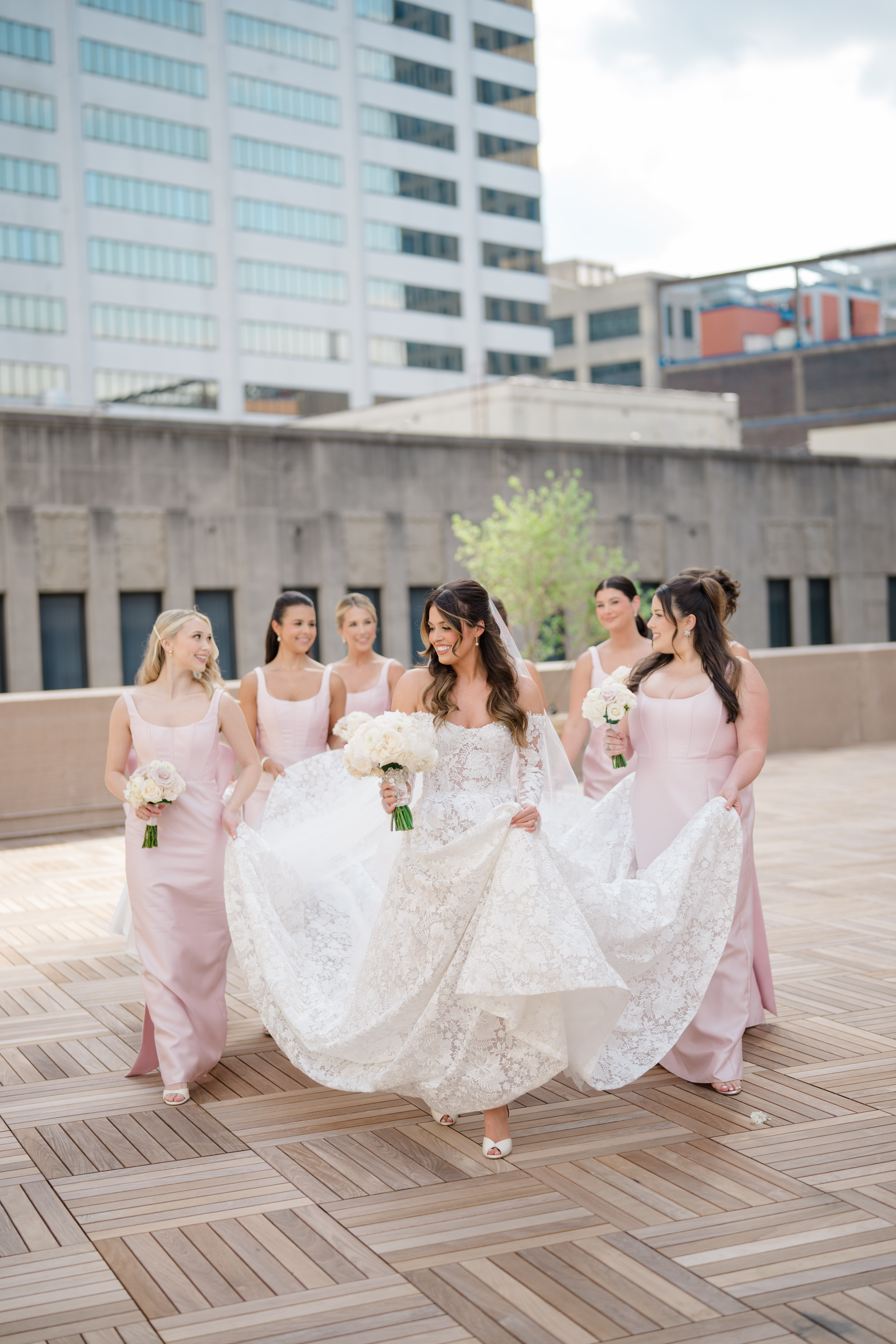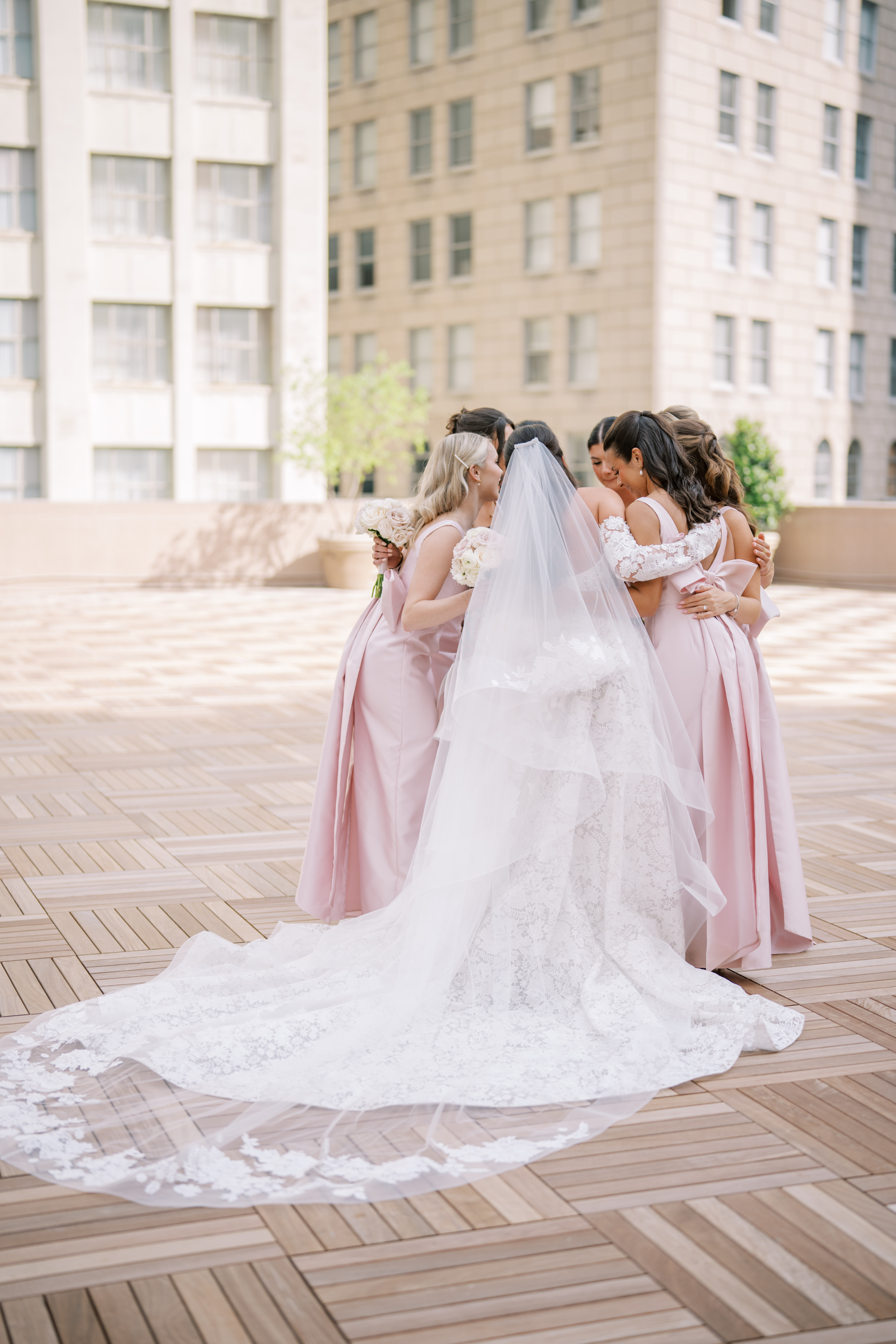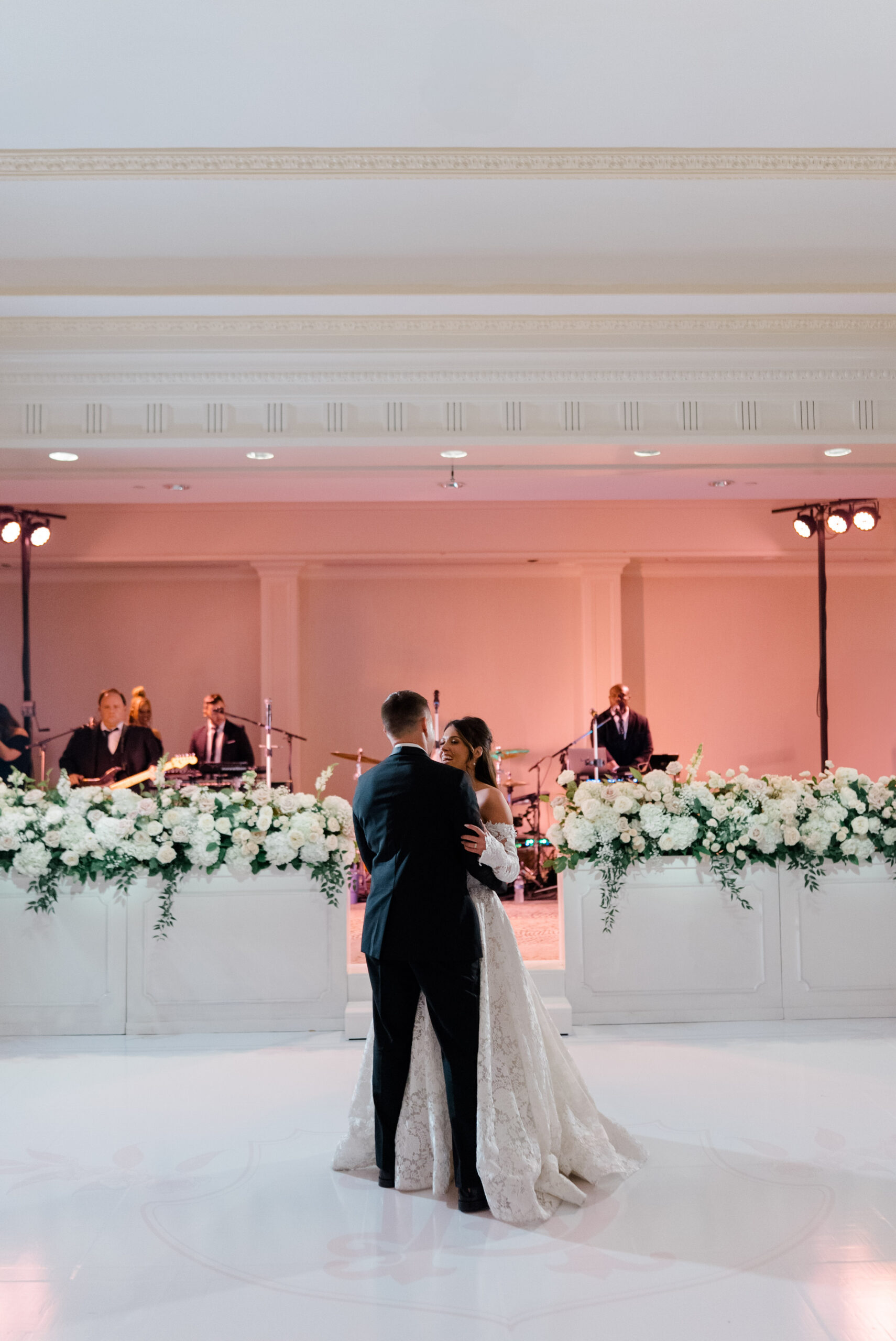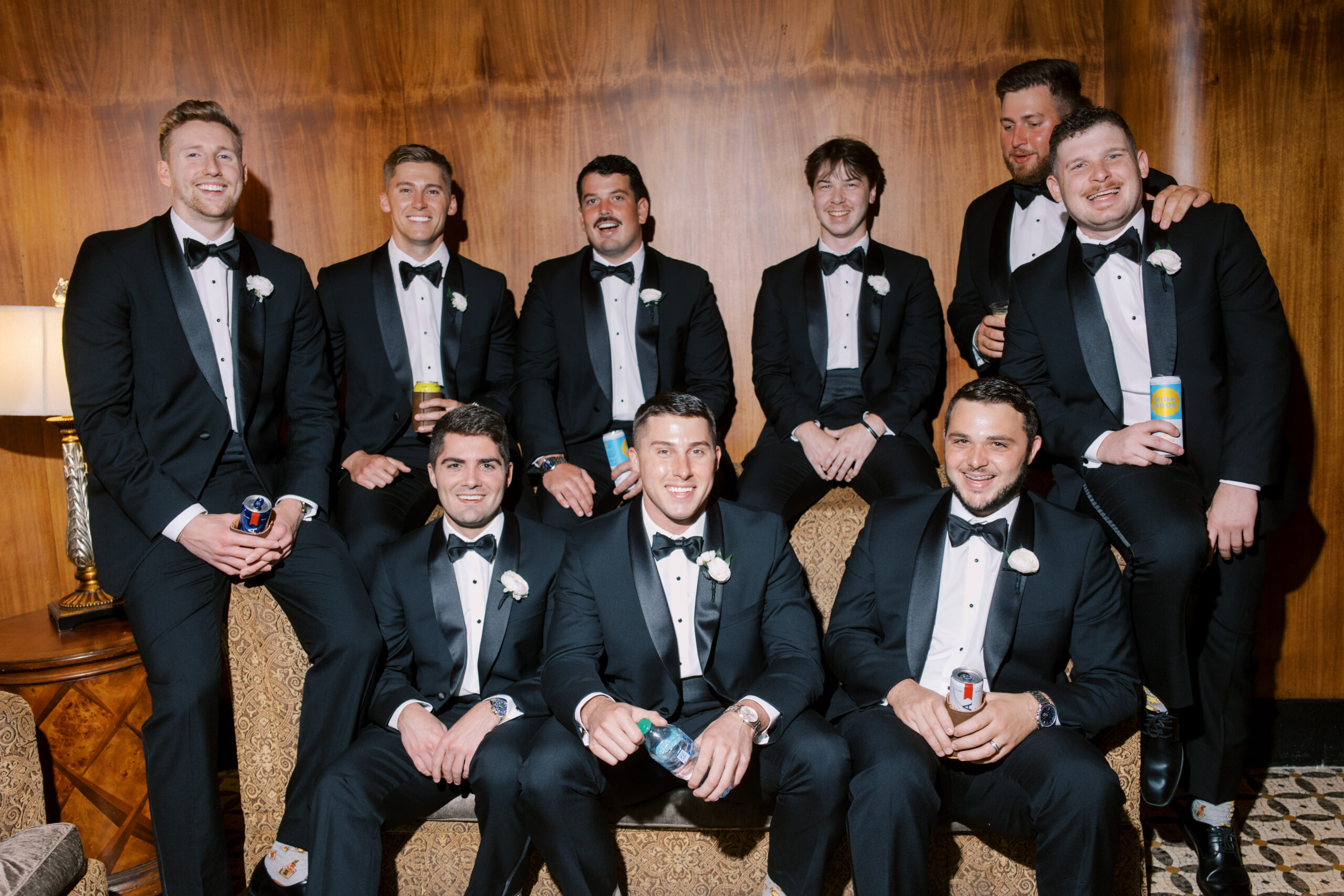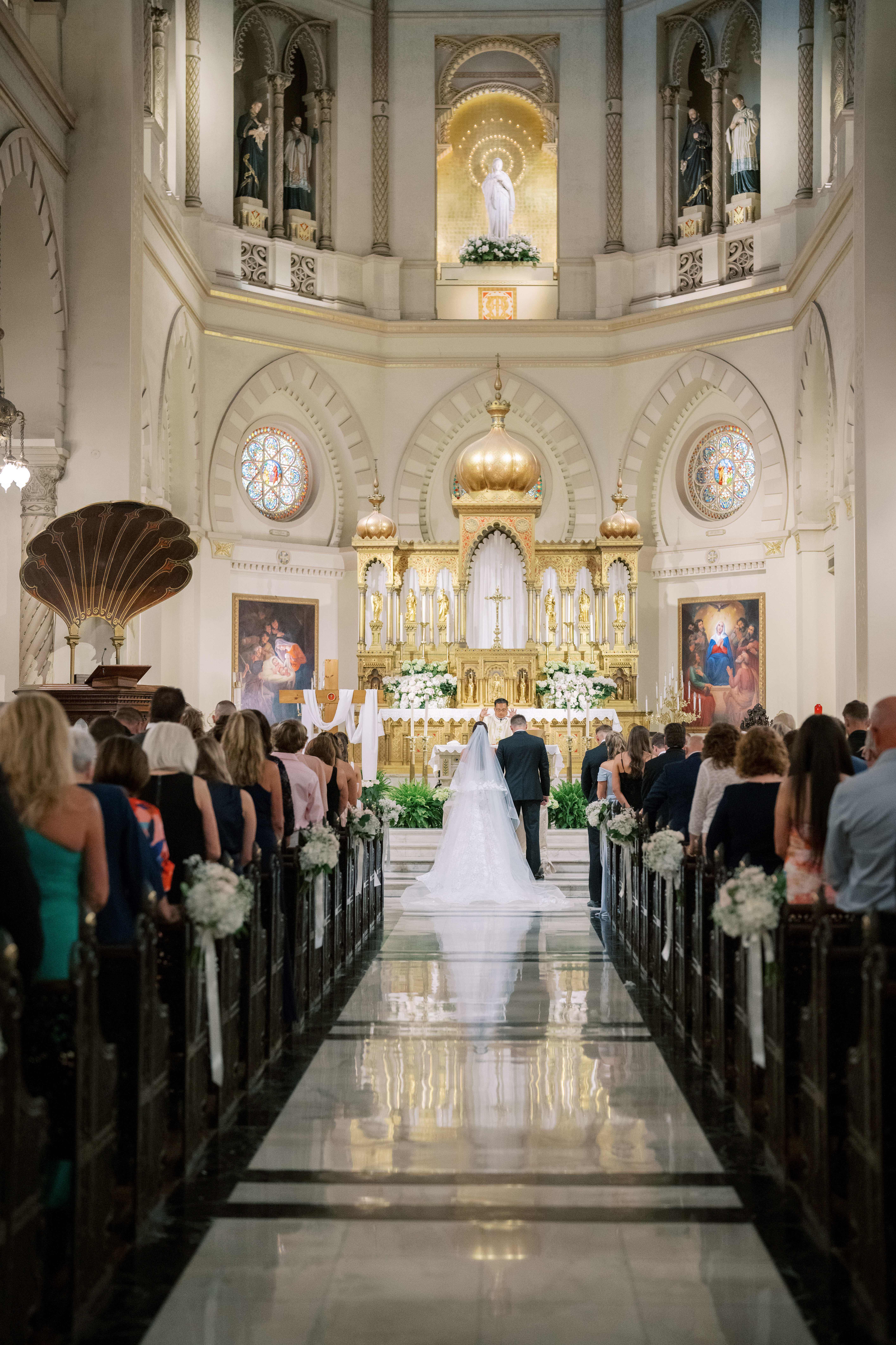 VENUE + BAKERY + CATERER: The Roosevelt | CEREMONY LOCATION: Immaculate Conception Jesuit Church | OFFICIANT: Father Alex | REHEARSAL DINNER LOCATION: Arnaud’s | AFTER PARTY VENUE: Double Dealer | BRIDAL GOWN: Berta | BRIDESMAIDS’ GOWNS: Alfred Sung, London | PHOTOGRAPHER + VIDEOGRAPHER: Brooke Boyd Photo & Films | CEREMONY MUSIC: Immaculate Conception Musicians | RECEPTION ENTERTAINMENT: The Mixed Nuts | SECOND LINE BAND: Kinfolk Brass Band | AFTER PARTY DJ: Oh2 Entertainment, llc | HAIR + MAKEUP: Megan Adams, Hair & Mainstreet Salon + Maddie G MUA | HONEYMOON: Antigua | WEDDING PLANNER/DESIGNER: Amanda Price Events | DECOR RENTALS: Ad Event Group + Distressed Rentals | LINEN RENTALS: BJJ Latavola + Nuage Designs | CANDLE DECOR/LIGHTING: Radiant Rentals NOLA | AFTER PARTY CATERER: Pigéon Catering & Events | SECOND LINE BAR SERVICE: Bourbon Bubbly & Brew | HOT DOG CART: Lucky Dogs | JEWELERS: Béjé, engagement ring + Ramsey’s Diamonds, Bride’s custom wedding band (made with diamonds from her mother’s ring) + Jared, Groom’s wedding band | LIVE PAINTER: Torregrossa Fine Art | PHOTO BOOTH: Boogie Booth | INVITATIONS: Dogwood Blossom