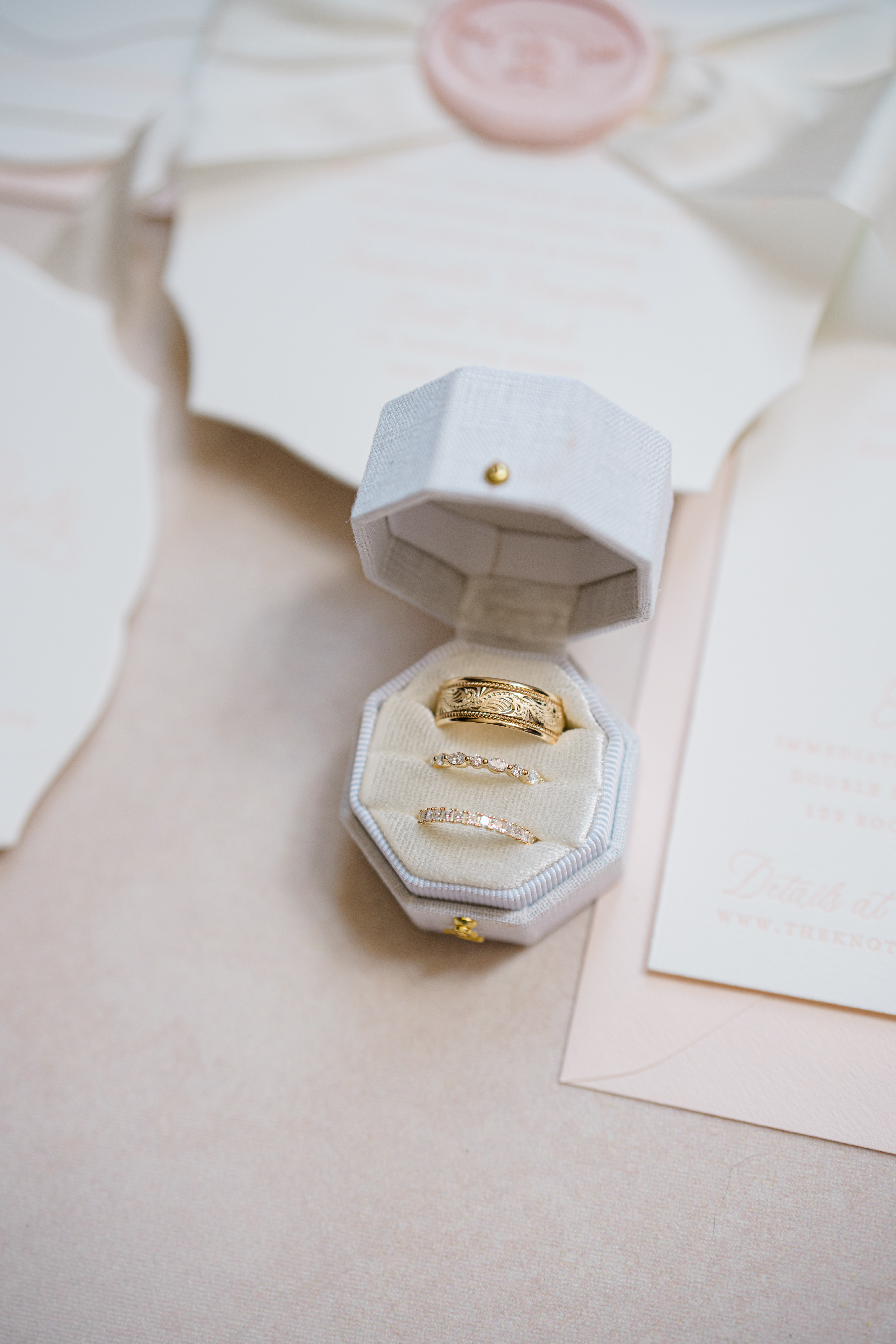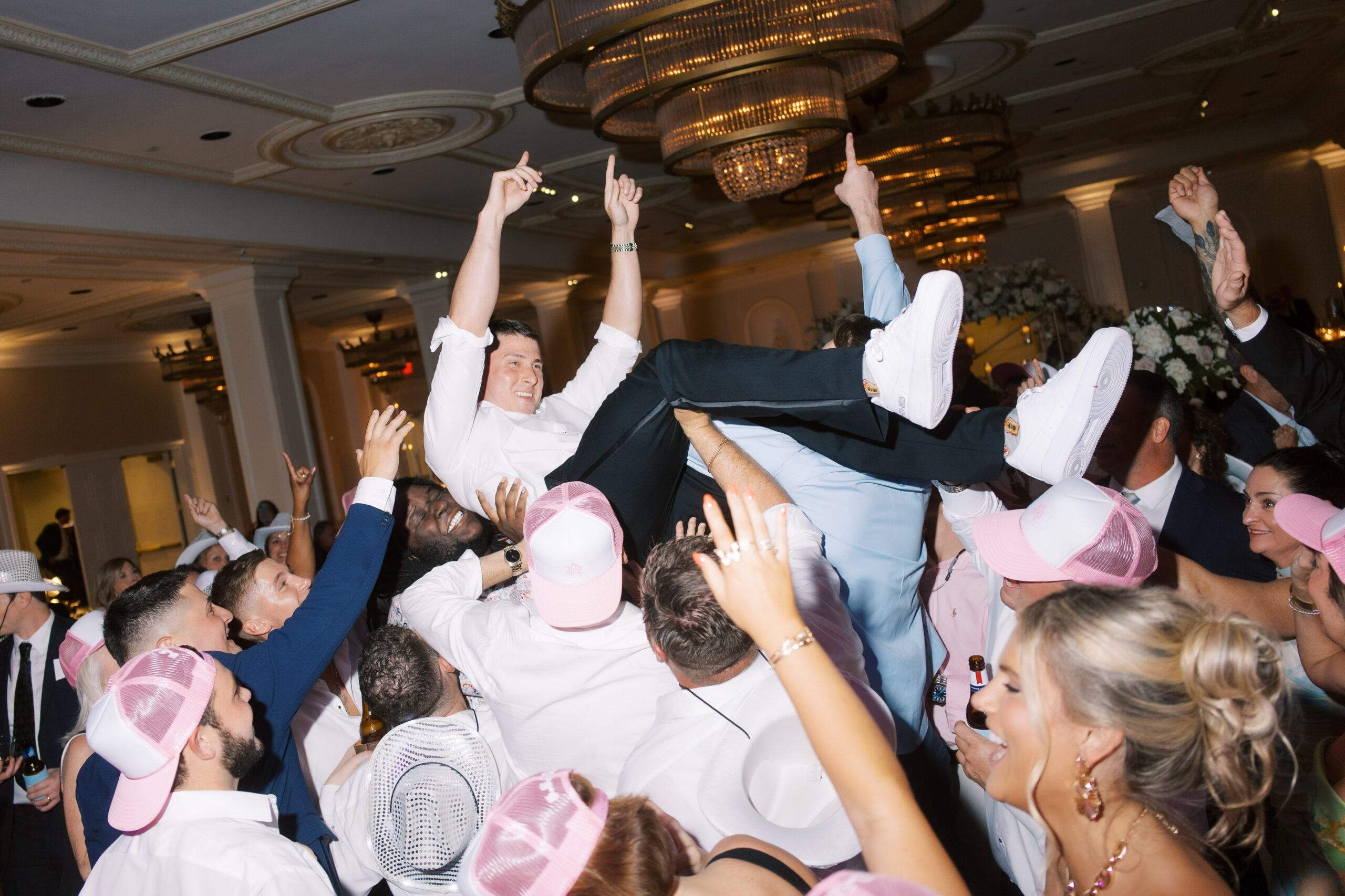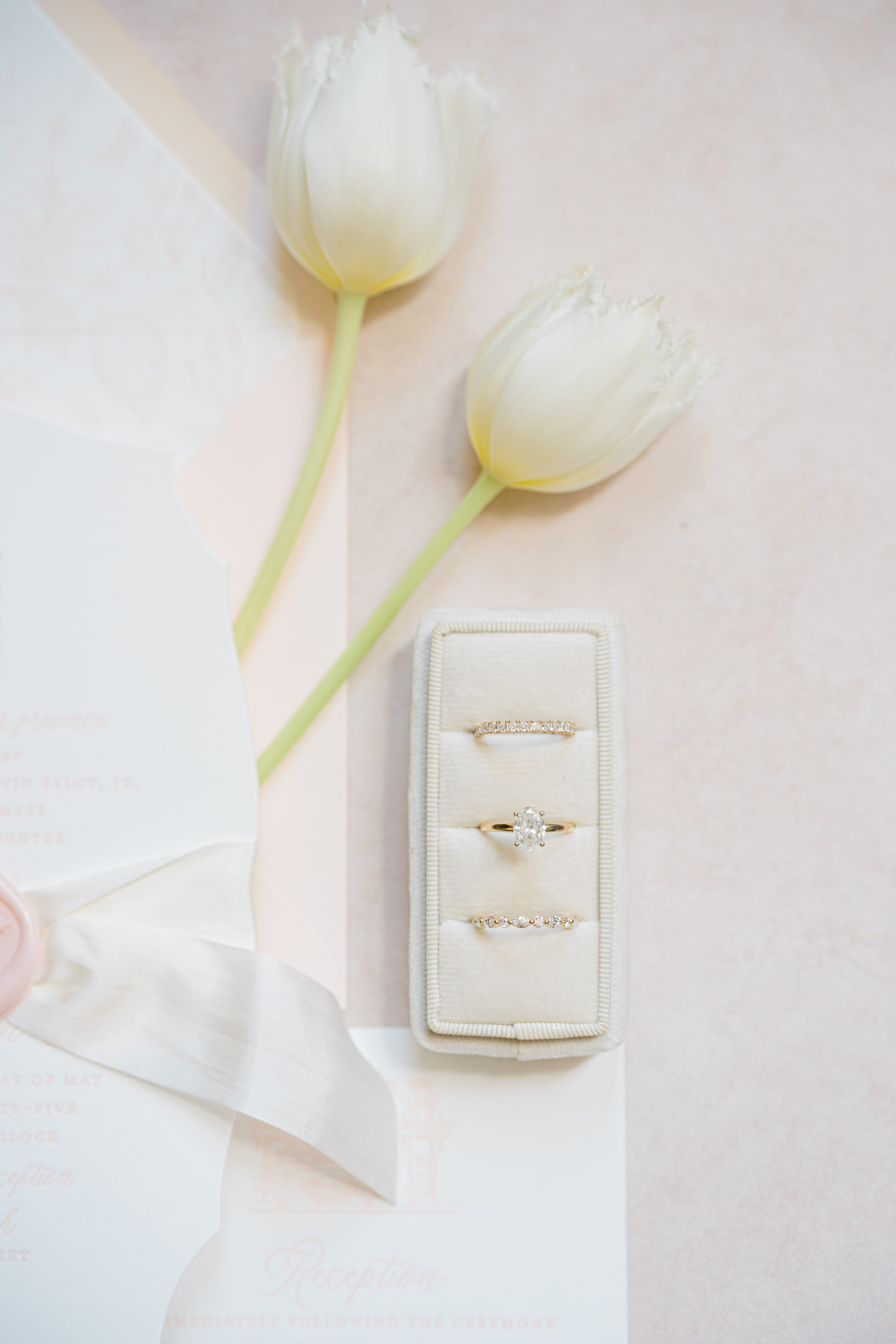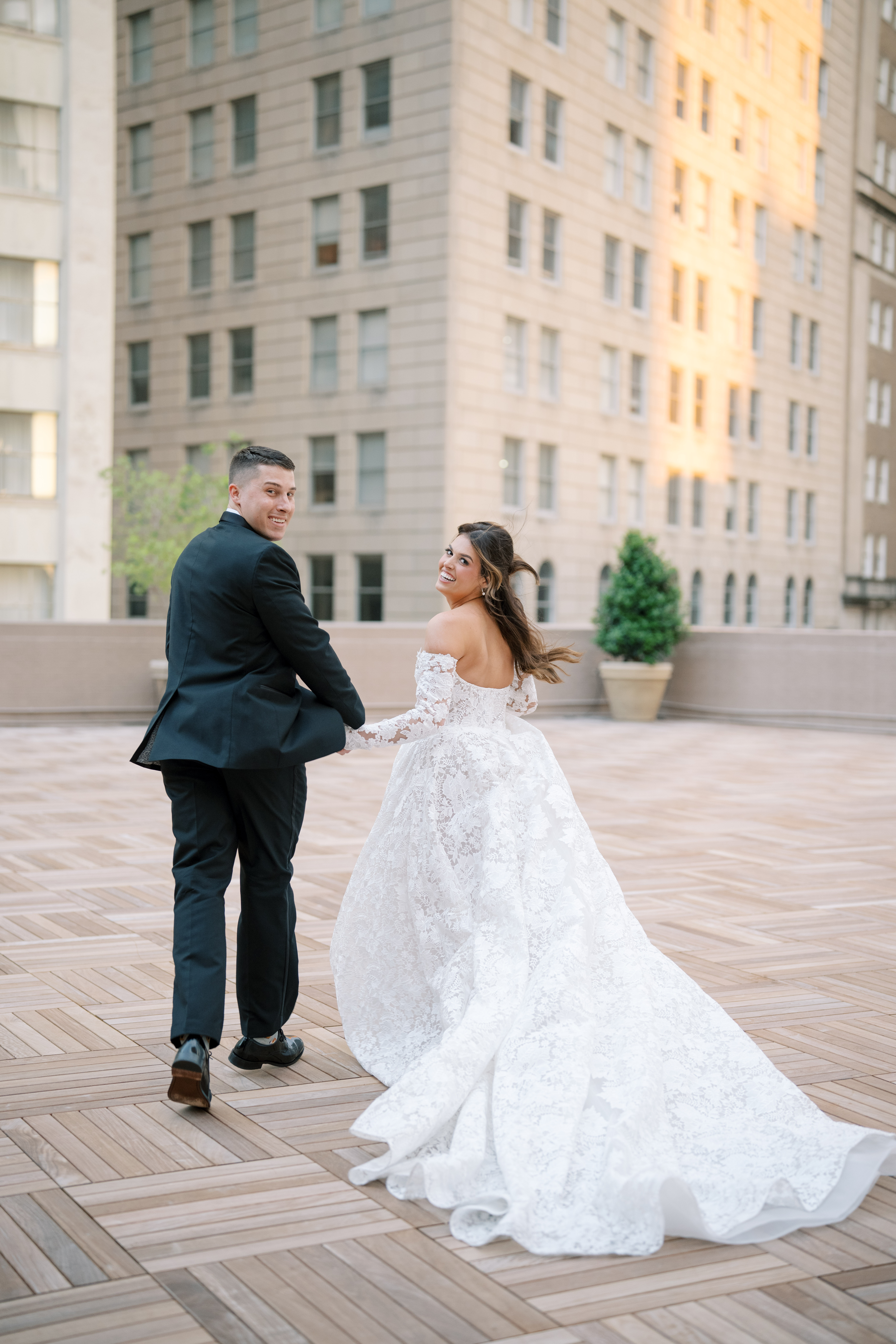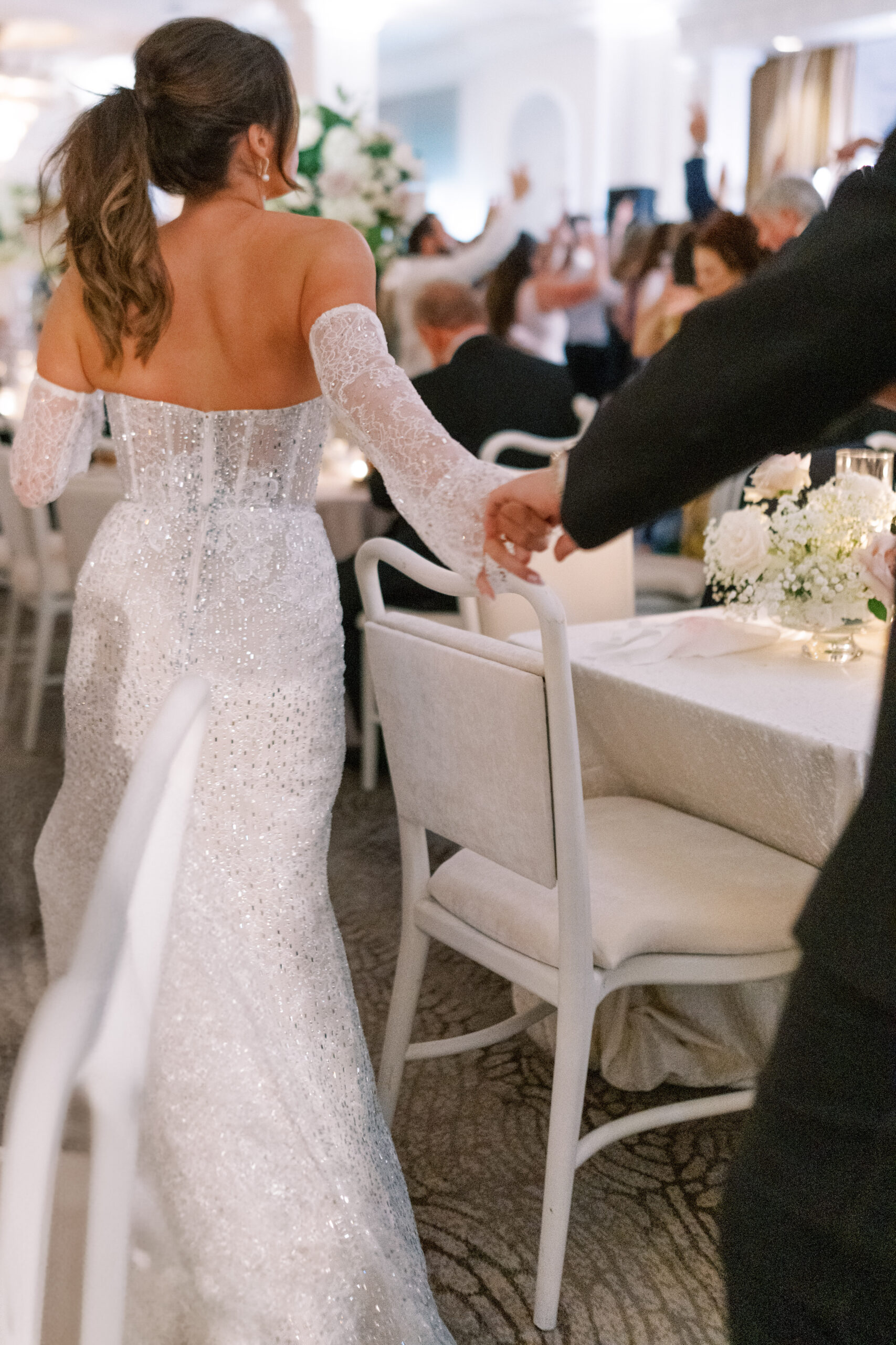 VENUE + BAKERY + CATERER: The Roosevelt | CEREMONY LOCATION: Immaculate Conception Jesuit Church | OFFICIANT: Father Alex | REHEARSAL DINNER LOCATION: Arnaud’s | AFTER PARTY VENUE: Double Dealer | BRIDAL GOWN: Berta | BRIDESMAIDS’ GOWNS: Alfred Sung, London | PHOTOGRAPHER + VIDEOGRAPHER: Brooke Boyd Photo & Films | CEREMONY MUSIC: Immaculate Conception Musicians | RECEPTION ENTERTAINMENT: The Mixed Nuts | SECOND LINE BAND: Kinfolk Brass Band | AFTER PARTY DJ: Oh2 Entertainment, llc | HAIR + MAKEUP: Megan Adams, Hair & Mainstreet Salon + Maddie G MUA | HONEYMOON: Antigua | WEDDING PLANNER/DESIGNER: Amanda Price Events | DECOR RENTALS: Ad Event Group + Distressed Rentals | LINEN RENTALS: BJJ Latavola + Nuage Designs | CANDLE DECOR/LIGHTING: Radiant Rentals NOLA | AFTER PARTY CATERER: Pigéon Catering & Events | SECOND LINE BAR SERVICE: Bourbon Bubbly & Brew | HOT DOG CART: Lucky Dogs | JEWELERS: Béjé, engagement ring + Ramsey’s Diamonds, Bride’s custom wedding band (made with diamonds from her mother’s ring) + Jared, Groom’s wedding band | LIVE PAINTER: Torregrossa Fine Art | PHOTO BOOTH: Boogie Booth | INVITATIONS: Dogwood Blossom