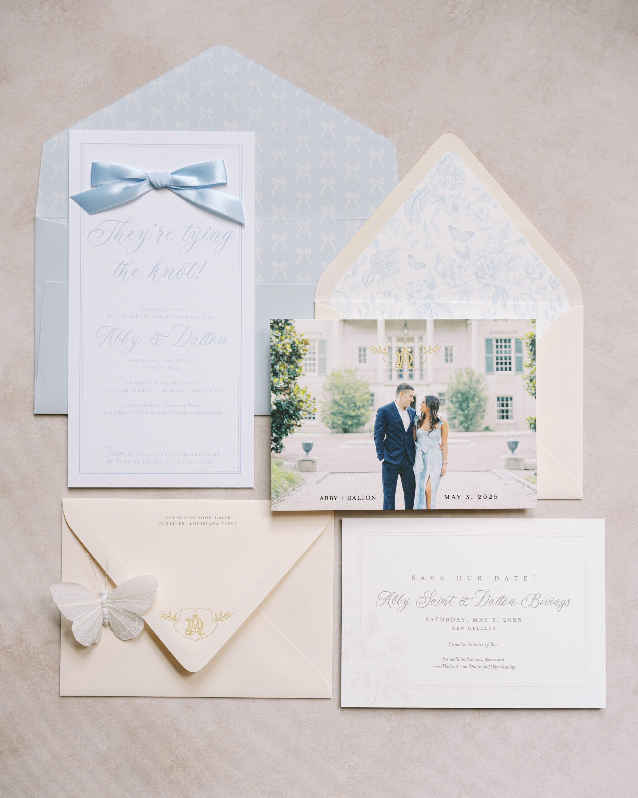 Abby and Dalton’s love story began on a spontaneous summer night in 2020. After a long trip with friends, Abby almost skipped a boat outing in Hammond, Louisiana – but decided to go at the last minute. Dalton wasn’t supposed to be there either, but fate had other plans. They met on that boat under the stars while “frogging” – a moment Abby will always cherish. From that night on, they were inseparable. Four years later, Dalton proposed in the exact spot where they took their first trip together: Destin, Florida.