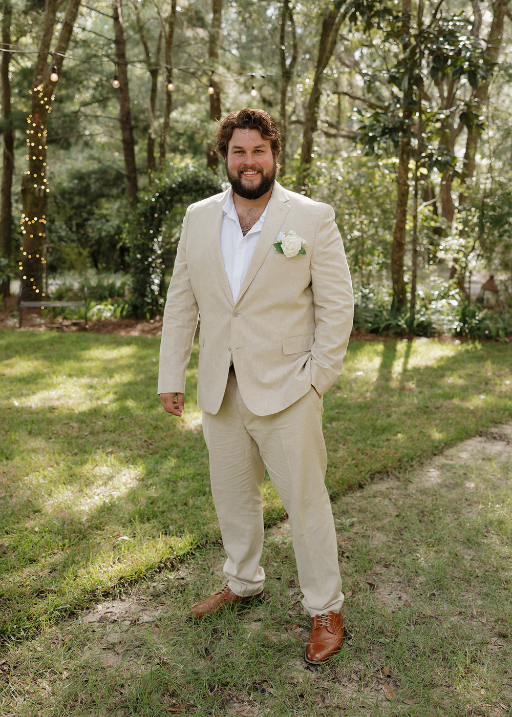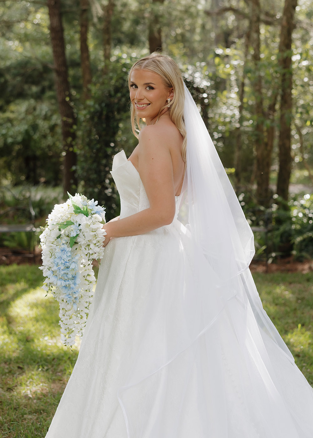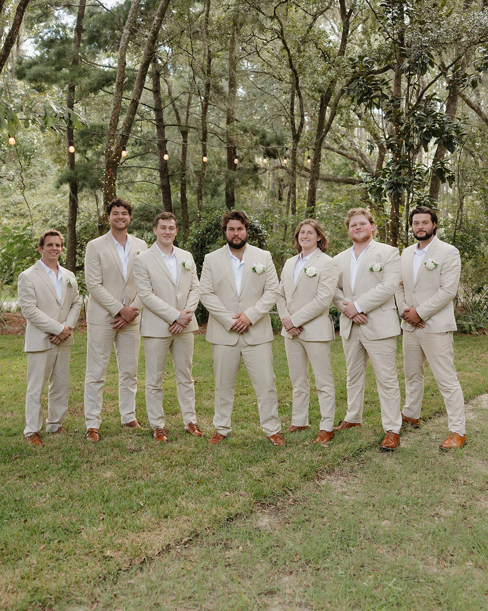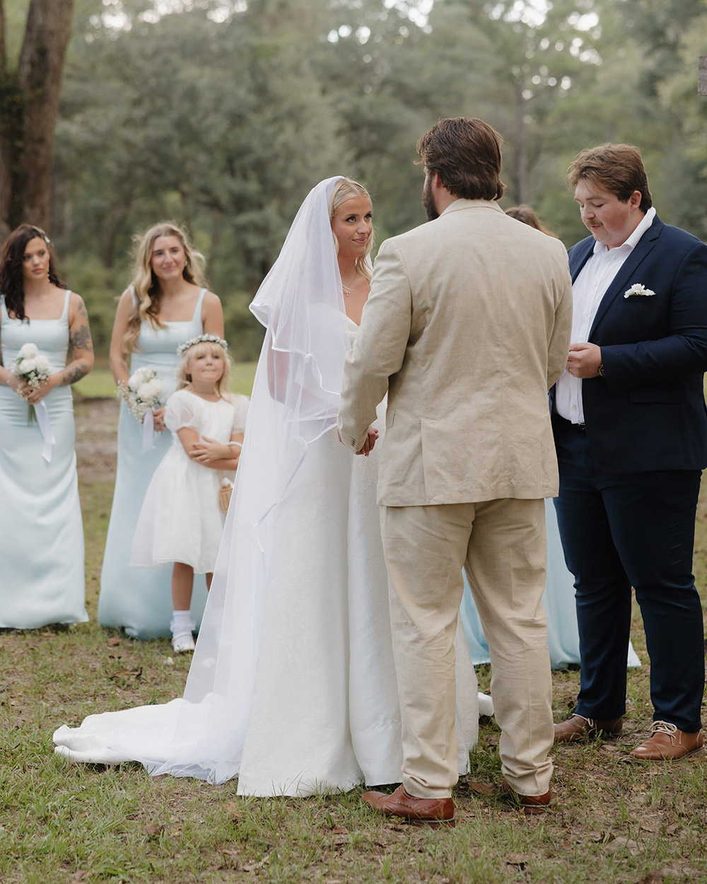 VENUE: Live Oak Plantation (Vernon, Fl) | OFFICIANT: Dalton Wilson | BRIDAL GOWN : Wtoo by Walters, Rebecca’s Bridal | BRIDESMAIDS’ GOWNS: Stacey’s Bridal | GROOM/GROOMSMEN ATTIRE: Joseph Abboud | PHOTOGRAPHER: Madison Higgins, Higgins Photo and Film | BAKERY: The Baykery | CEREMONY MUSIC: Strings Bespoke | RECEPTION ENTERTAINMENT: Spitfire Entertainment | HAIR + MAKEUP: Alexis Cain + Morgan Womack | HONEYMOON: Puerto Rico | WEDDING PLANNER/DESIGNER: Rachel McCarty | CATERER: Catering By Lisa | JEWELER: Melanie Casey | FAVORS: Hand picked oyster shells with custom logos that say “FROM FLORIDA WITH LOVE” | INVITATIONS: Custom Canva