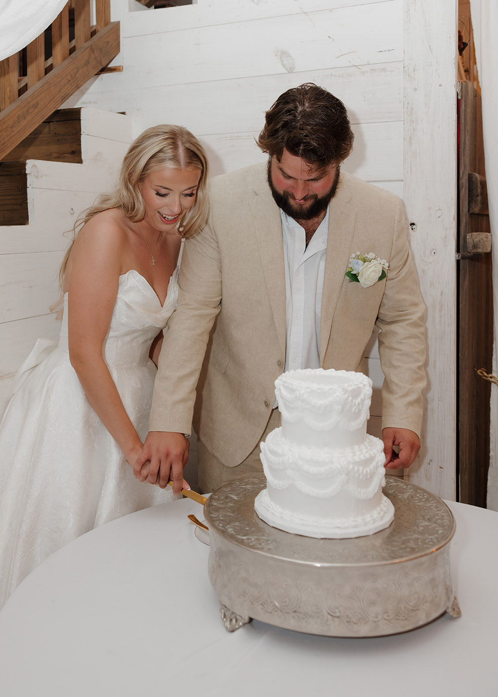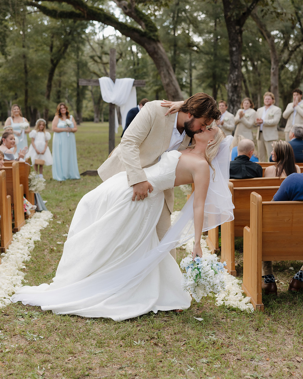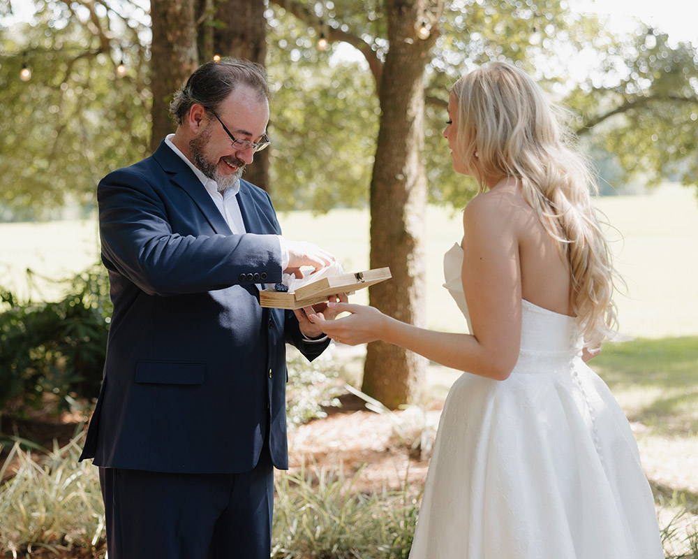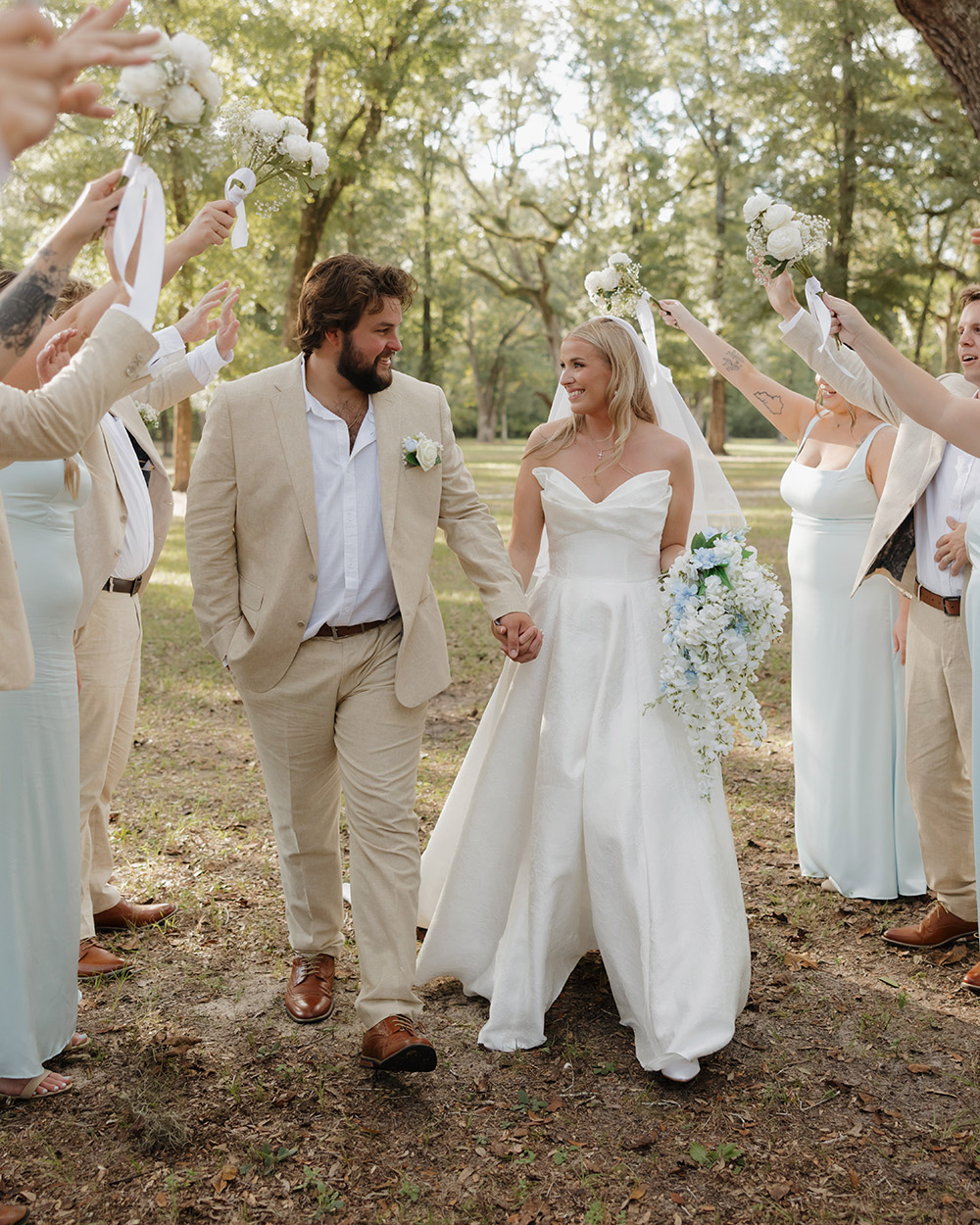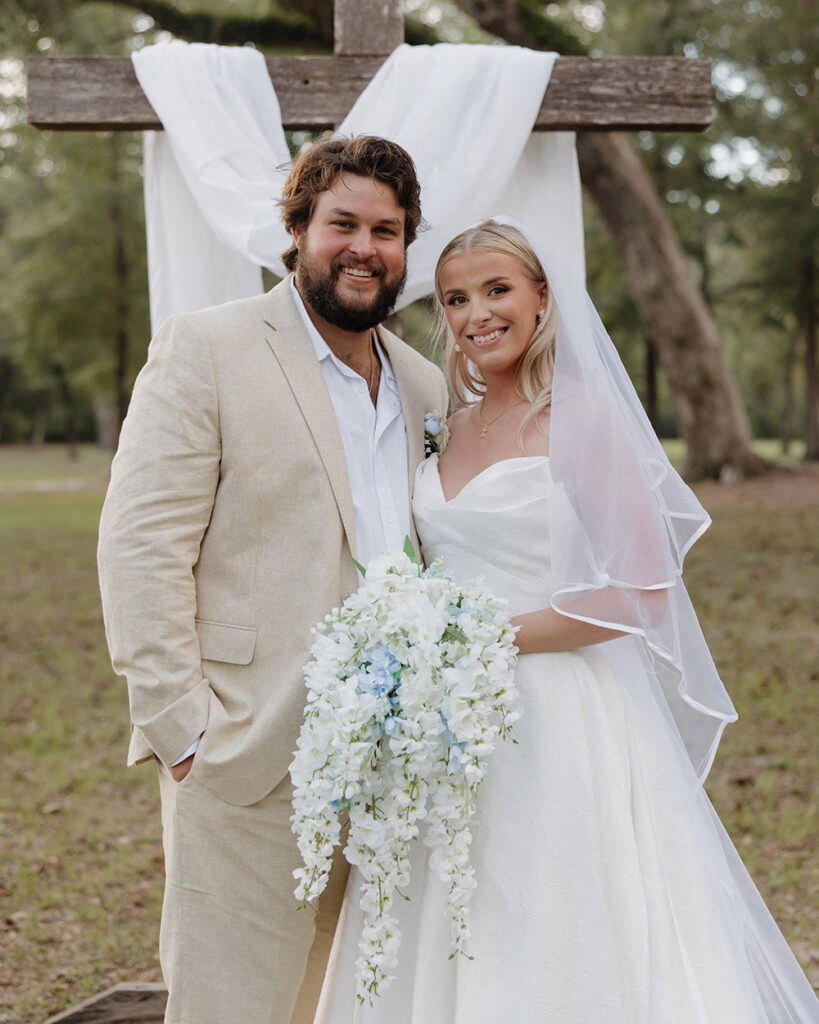 “Our wedding was a testament to God’s grace and protection,” shares Victoria. “Just two days before our big day, Hurricane Helene swept through, and we braced for the worst. The week leading up to the wedding was filled with uncertainty, but to our surprise, our venue stood strong. Every oak tree remained untouched, not a single branch fell, and it was nothing short of perfect—clear skies, a gentle breeze, and the love of our closest family and friends surrounding us. What could have been a disaster became a beautiful reminder that even in life’s storms, God’s hand is always at work, turning trials into triumphs.”