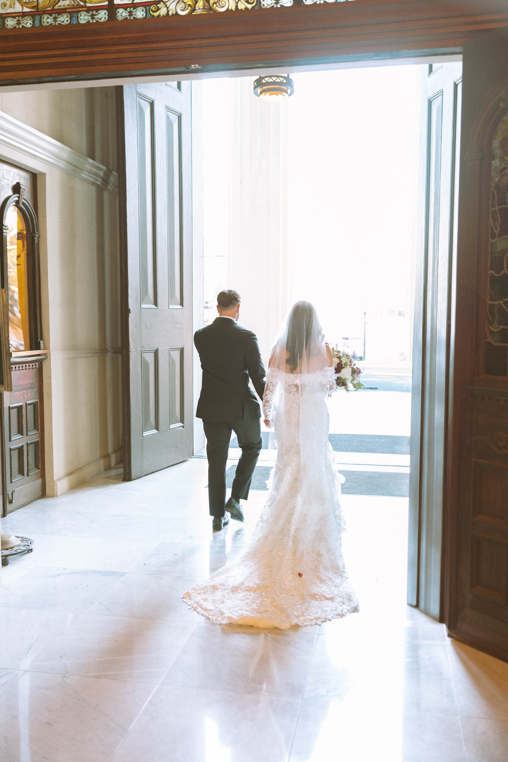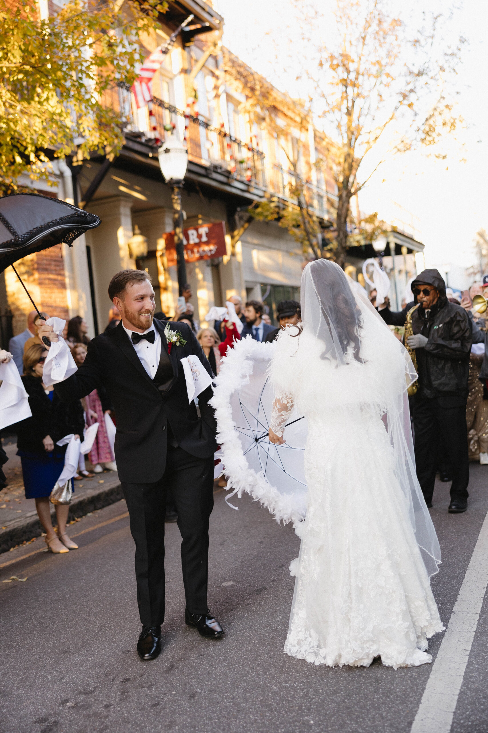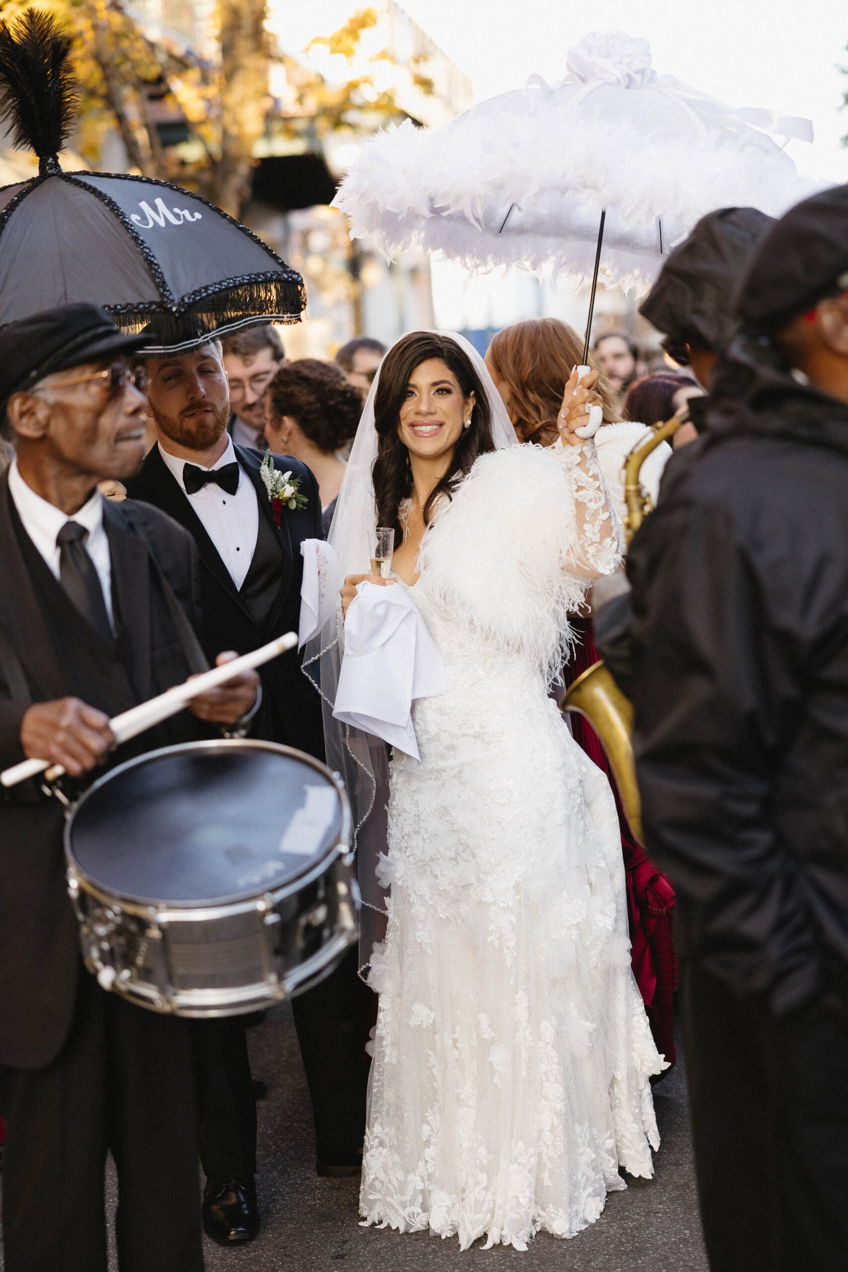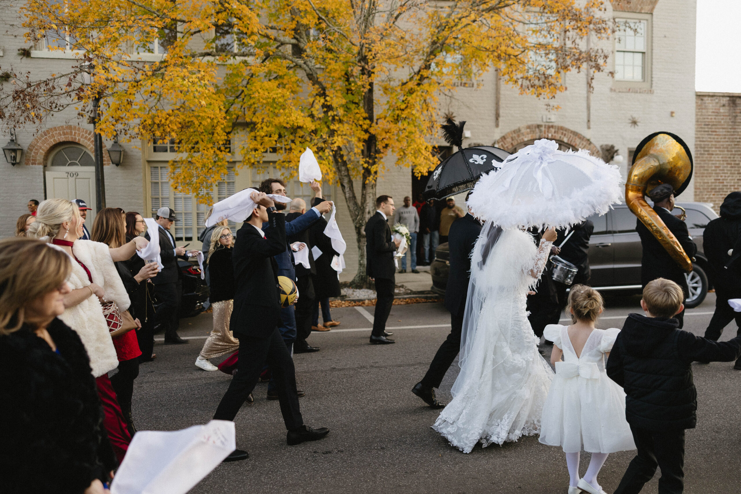 CEREMONY LOCATION: The Cathedral Basilica of the Immaculate Conception | OFFICIANT: Father Dan Good | RECEPTION LOCATION + CATERER: Crown Hall | CHAMPAGNE HOUR: Lupercalia Art Society and Gallery | BRIDAL GOWN: Yvonne La Fleur | BRIDESMAIDS’ GOWNS: Azazie | GROOM/GROOMSMEN ATTIRE: Calvin Klein from Jos. A Bank | PHOTOGRAPHER: Mary Patterson Wallace | FLORIST: Farm Girl Floral & Events | BAKERY: Pollman’s Bakery | SECOND LINE BAND: Excelsior Brass Band | RECEPTION ENTERTAINMENT: The Tip Tops | HAIR + MAKEUP: Hair by Lydia Bell and Makeup by Brittanie Summers | HONEYMOON: Greece | WEDDING PLANNER/DESIGNER: Jennifer Anderson with Farm Girl Florals | JEWELER: Janet Bruno Small | FAVORS: Christmas Ornaments with the Bride and Groom’s Names | INVITATIONS: It’s Inviting