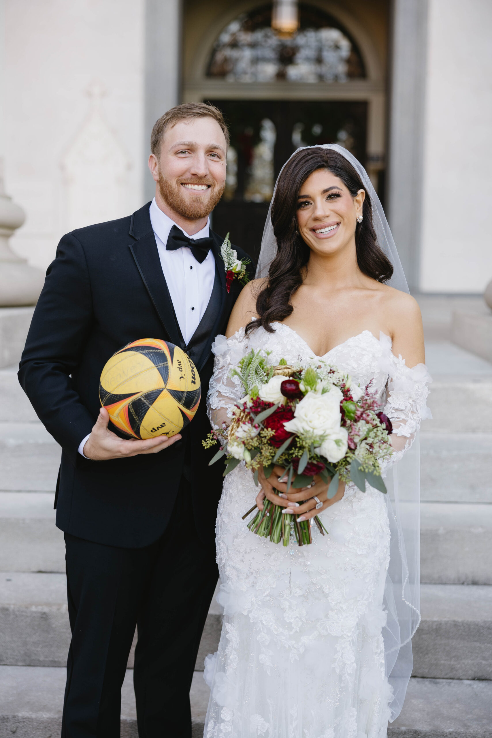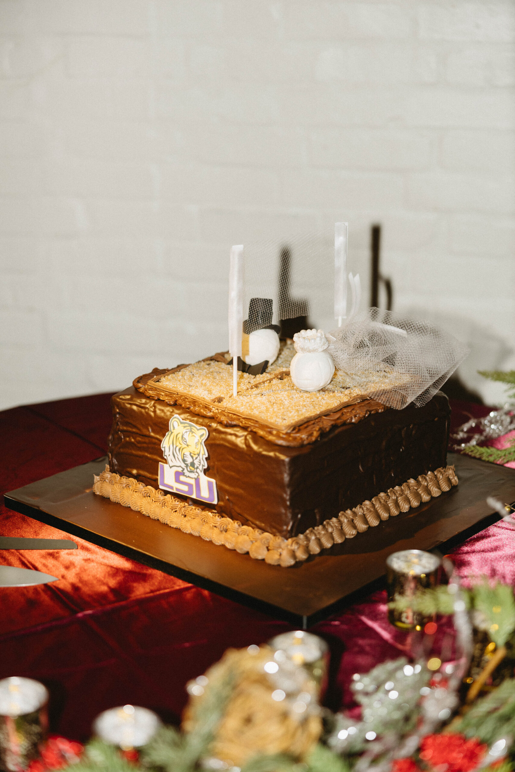 Sofia Bruno and Anthony Esposito’s wedding in Mobile was a joyful celebration of their love, their roots, and the close-knit communities that shaped them. The two first met on the beach volleyball courts at the Pier House on the Causeway, and that shared passion has continued to be part of their lives – they now coach together, a detail sweetly acknowledged in the groom’s cake.