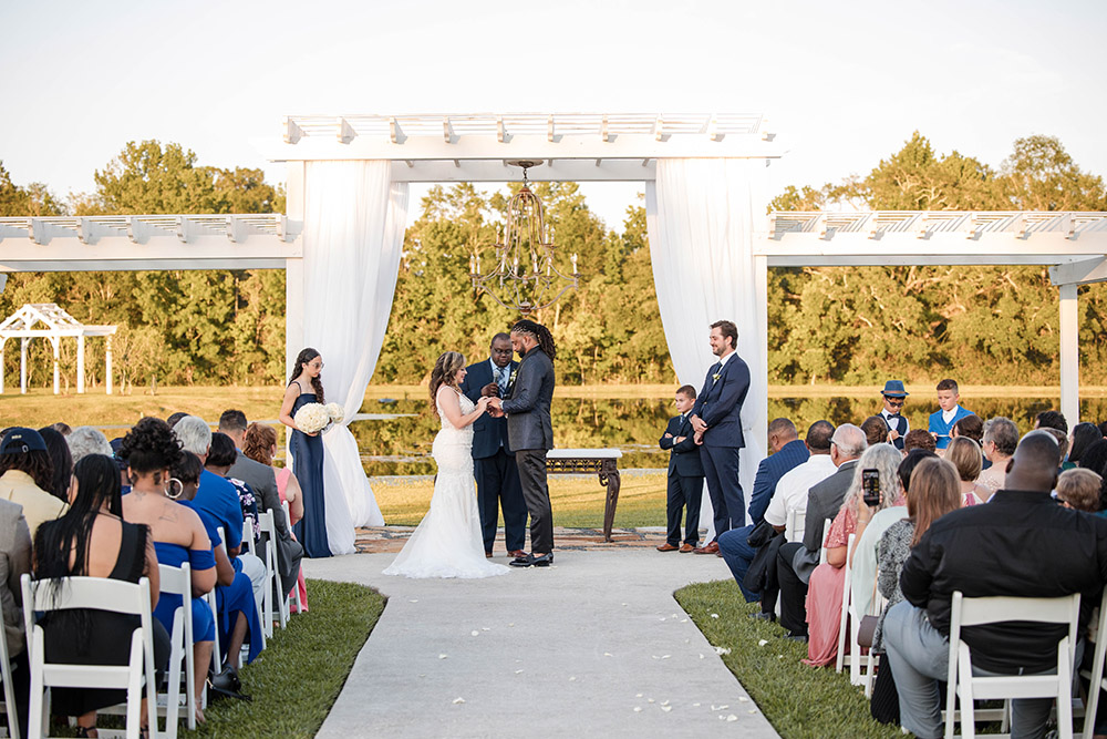 VENUE: Milicevic Family Vineyards | OFFICIANT: Pastor Carlos Cage | REHEARSAL DINNER LOCATION: Palmettos on the Bayou | BRIDAL GOWN: Justin Alexander, Olivier Couture Bridal | GROOM/GROOMSMEN ATTIRE: Cortez Jackson, Lavoisier Suits | PHOTOGRAPHER: Modern Glow Photography | FLORIST: Events & Design by Nancy | BAKERY: Paul’s Pastry Shop | CEREMONY MUSIC + RECEPTION ENTERTAINMENT: DJ Jess | HAIR + MAKEUP: Hair, Brit Hardy + Makeup, Kristin Morris | HONEYMOON: Alaska | DECOR RENTALS: Limitless Entertainment | JEWELER: Tiffany’s | INVITATIONS: The Designated Host