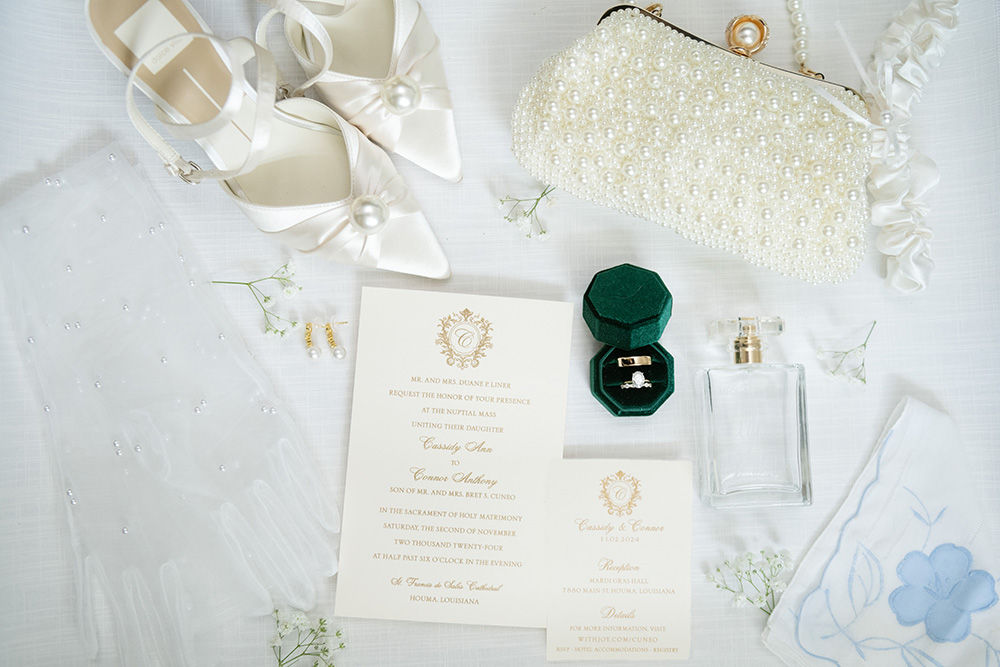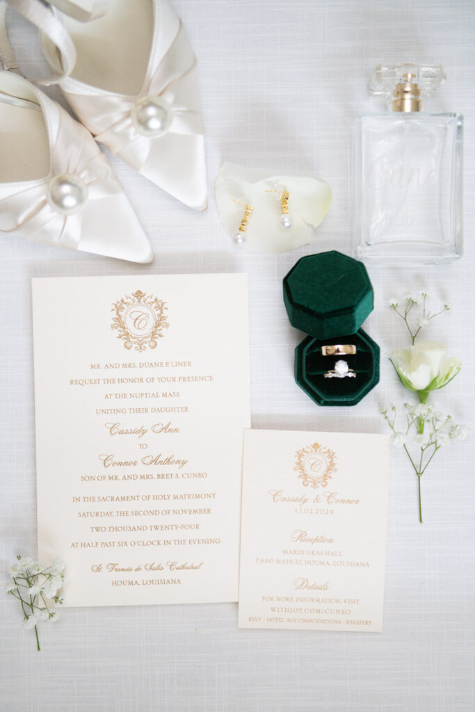 GETTING READY LOCATIONS: The Bride + Groom’s Parents’ Homes | CEREMONY LOCATION: St. Francis de Sales Cathedral | OFFICIANT: Fr. Jay Baker | RECEPTION LOCATION: Mardi Gras Hall | REHEARSAL DINNER LOCATION: Ellendale Country Club | BRIDAL GOWN: Town & Country Bridal | BRIDESMAIDS’ GOWNS: The Dessy Group | GROOM/GROOMSMEN ATTIRE: Norman’s Tuxedos | PHOTOGRAPHER: Channing Candies Photography | FLORIST: Ever Design | BAKERY: Cindy’s Cakes of Chackbay | CEREMONY MUSIC: Bonnie Le (Violinist) + Errol Bourgeois (Pianist/Vocalist) | RECEPTION ENTERTAINMENT: MoJeaux | TRANSPORTATION: Ray Rides | HAIR + MAKEUP: Braylin Cheramie + Carley Canty + Meg Adams | WEDDING PLANNER/DESIGNER + LIGHTING: Elegant Events of the South | DECOR RENTALS: AD Event Rentals + Designs by Connie | CATERER: Rendezvous | JEWELER: Fakier Jewelers | FAVORS: Totally Promotional + Lagniappe Life LLC | INVITATIONS: Creative Boost LLC | PHOTO BOOTH: I’ve Been Framed | ICE LUGE: Ice Dragon Ice