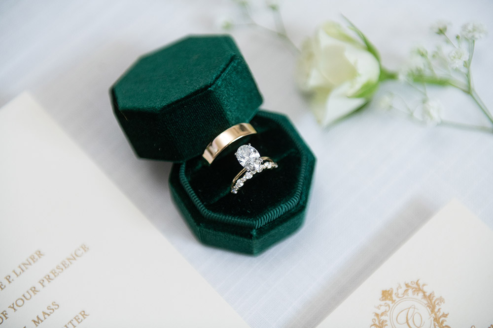 Connor proposed on Christmas Eve. “We had our usual plans: dinner at his parents’ house, church, then a gift exchange between just us two at home. He was acting completely normal all evening, so I didn’t suspect a thing.” Cassidy opened Connor’s gift – a coffee mug that read “Does this ring make me look engaged?” – as he knelt down on one knee with a ring in hand.