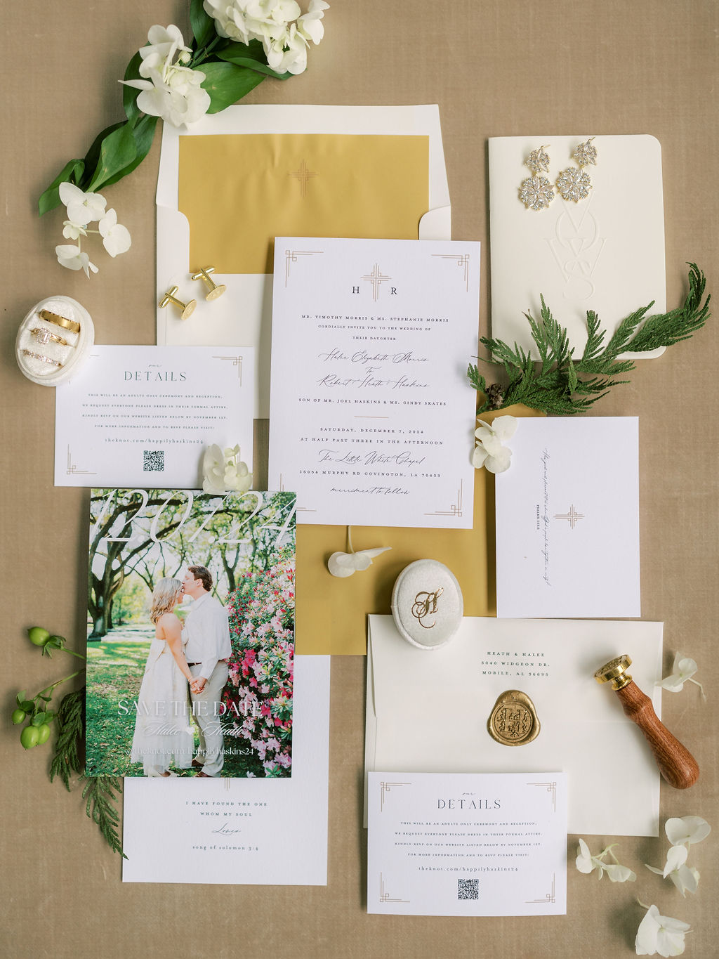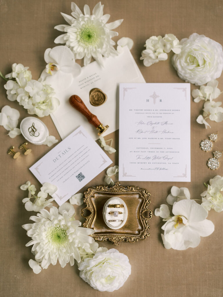 GETTING READY LOCATIONS: The Southern Hotel + Beau Chene Country Club | CEREMONY LOCATION: The Chapel at First Baptist Covington | OFFICIANT: Garrett Breland | RECEPTION LOCATION + CATERER: Beau Chene Country Club | REHEARSAL DINNER LOCATION: Fleur De Lis Event Center | BRIDESMAIDSβ GOWNS: Bella Bridesmaids | PHOTOGRAPHER: Madison Camille Photography | VIDEOGRAPHER: Willofilms | FLORIST: Donna Wolfe | BAKERY: Baked By Bree | RECEPTION ENTERTAINMENT: Limitless Entertainment | TRANSPORTATION: Royal Coach Limousine | HAIR + MAKEUP: Mandi Kraft + Jessica Silvey | HONEYMOON: Ireland, Scotland, and London | JEWELER: Olive Avenue + Ramseyβs Diamond Jewelers + Manly Bands | INVITATIONS: The Knot