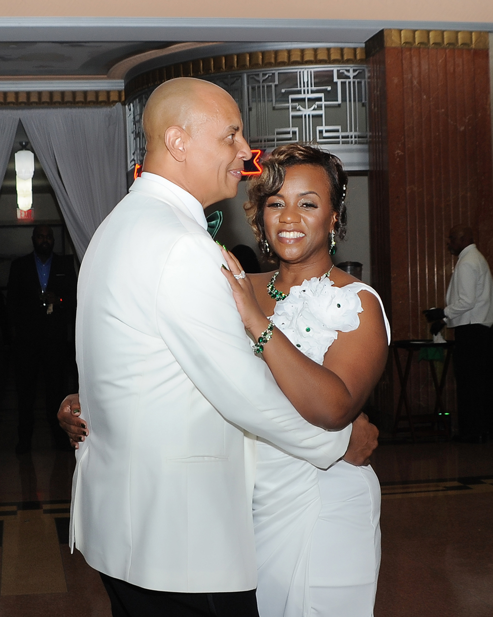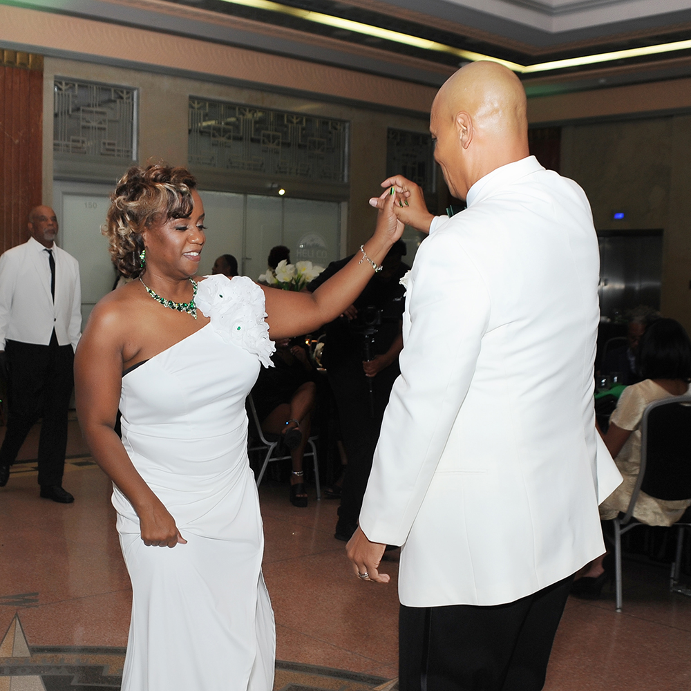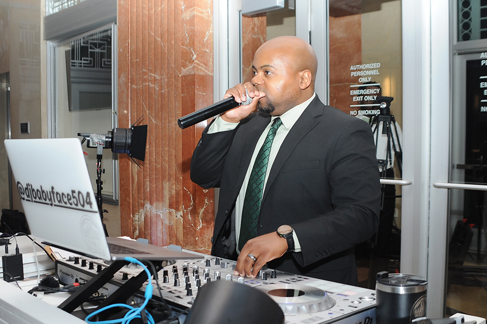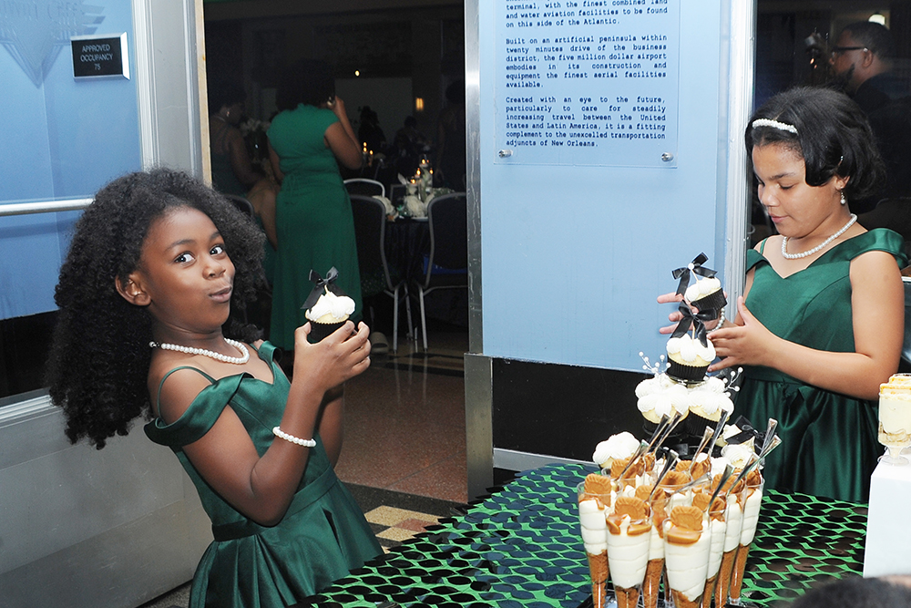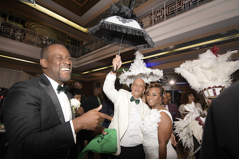 OFFICIANT: Pastor Lionel Roberts, Sr. | BRIDAL GOWN: Personalized Gown featuring the initials of the bride’s mother | BRIDESMAIDS’ GOWNS: David’s Bridal | PHOTOGRAPHER: Bernie Saul Photography | VIDEOGRAPHER: Early Films | FLORIST: Adrian’s Christian Flowers | BAKERY: Adrian’s Bakery | SWEET TREATS: Bake My Day | CEREMONY MUSIC: Soloist Steven Burke + DJ Babyface Williams | RECEPTION ENTERTAINMENT: DJ Babyface Williams + The Village Brass Band | TRANSPORTATION: Prime Transit NOLA | HAIR + MAKEUP: Hair, Carlyn Early + Makeup, Tremelda Cobb | HONEYMOON: Las Vegas, NV | DAY OF COORDINATOR + DECOR RENTALS + LIGHTING: Charlotte Neveaux | WEDDING EMCEE: Lonnie Marts lll | PHOTO BOOTH: Byrd’s Eyeview 504 | FAVORS: Second Line handkerchiefs and cups by Gem Printing | INVITATIONS: Bliss and Bones