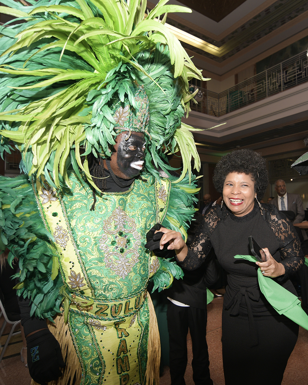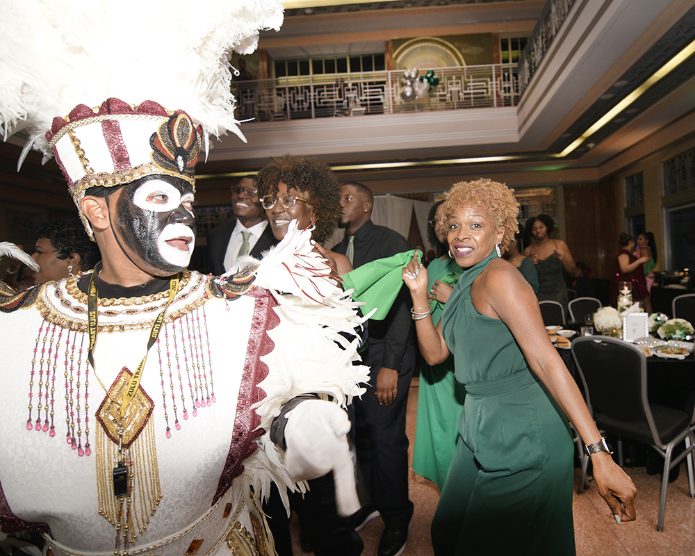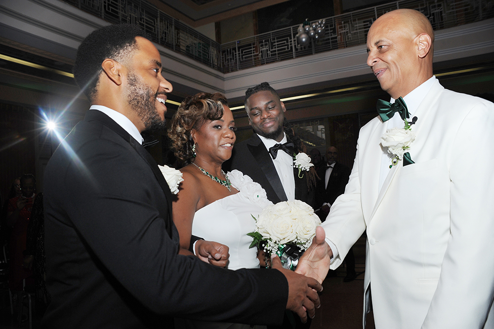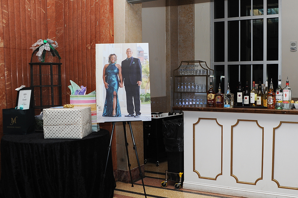 OFFICIANT: Pastor Lionel Roberts, Sr. | BRIDAL GOWN: Personalized Gown featuring the initials of the bride’s mother | BRIDESMAIDS’ GOWNS: David’s Bridal | PHOTOGRAPHER: Bernie Saul Photography | VIDEOGRAPHER: Early Films | FLORIST: Adrian’s Christian Flowers | BAKERY: Adrian’s Bakery | SWEET TREATS: Bake My Day | CEREMONY MUSIC: Soloist Steven Burke + DJ Babyface Williams | RECEPTION ENTERTAINMENT: DJ Babyface Williams + The Village Brass Band | TRANSPORTATION: Prime Transit NOLA | HAIR + MAKEUP: Hair, Carlyn Early + Makeup, Tremelda Cobb | HONEYMOON: Las Vegas, NV | DAY OF COORDINATOR + DECOR RENTALS + LIGHTING: Charlotte Neveaux | WEDDING EMCEE: Lonnie Marts lll | PHOTO BOOTH: Byrd’s Eyeview 504 | FAVORS: Second Line handkerchiefs and cups by Gem Printing | INVITATIONS: Bliss and Bones