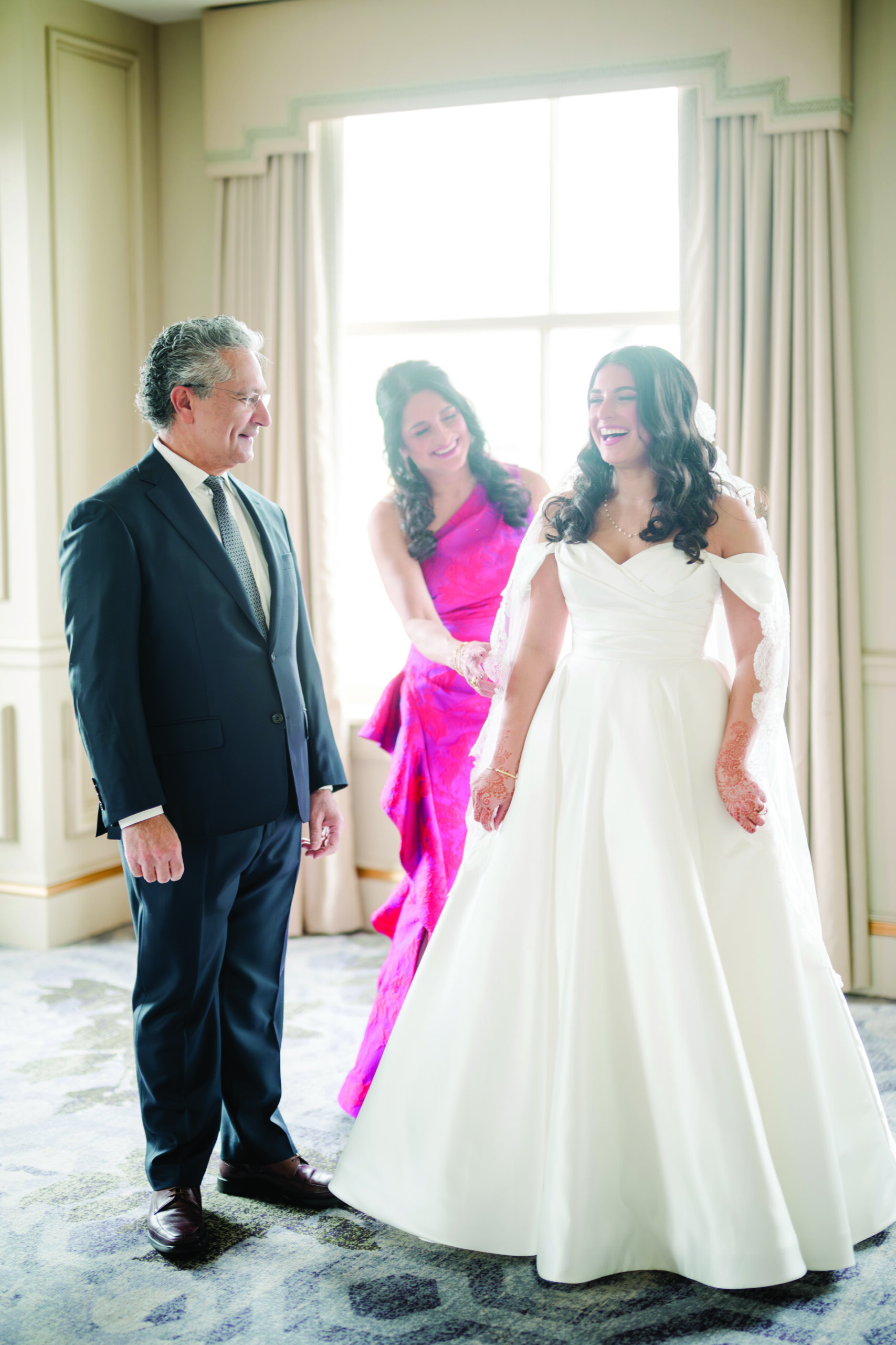 Athena’s father walked her down the aisle and performed the ceremony himself, translating traditional Sanskrit rites into English so every guest could understand the meaning behind each moment.