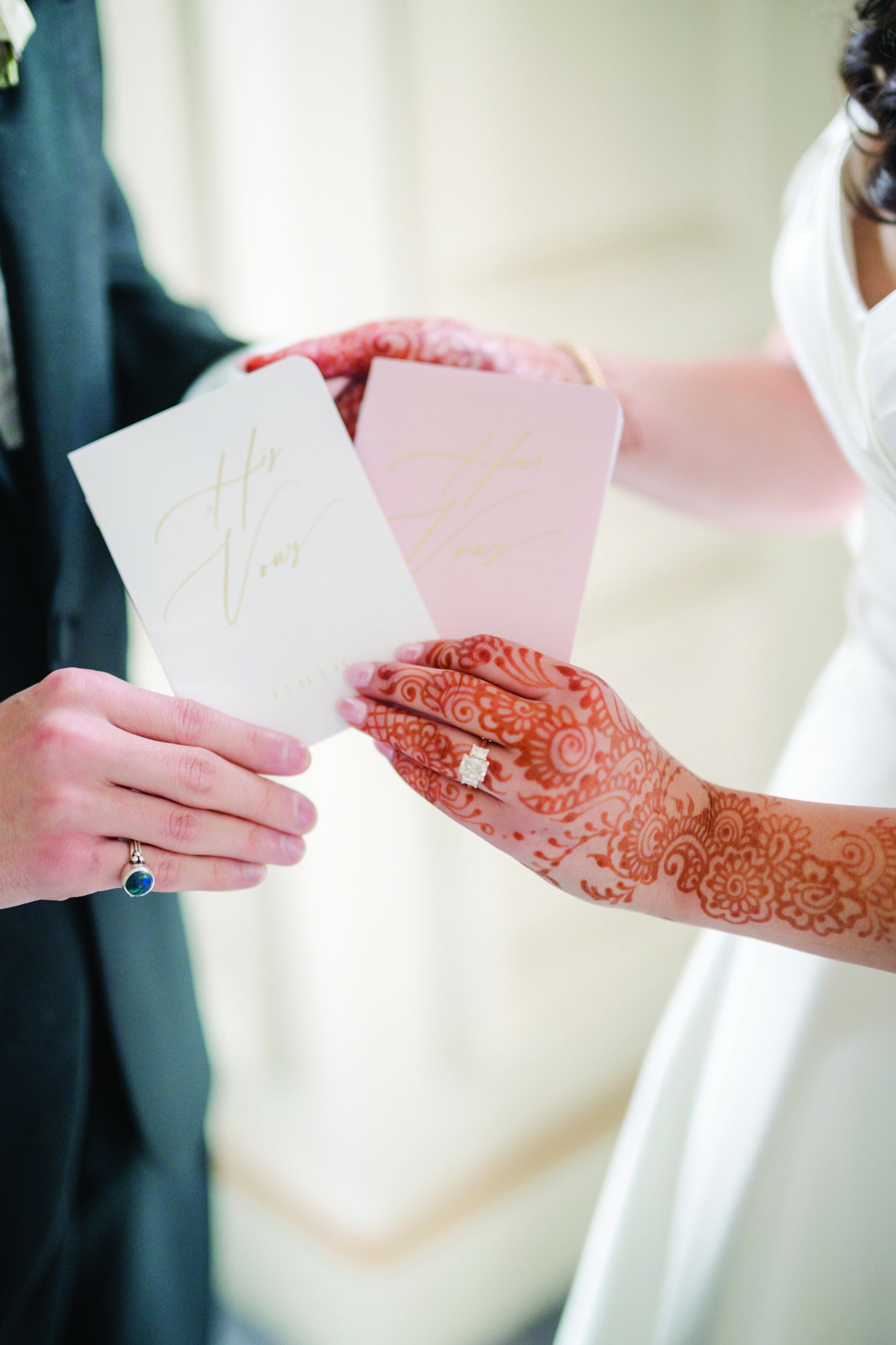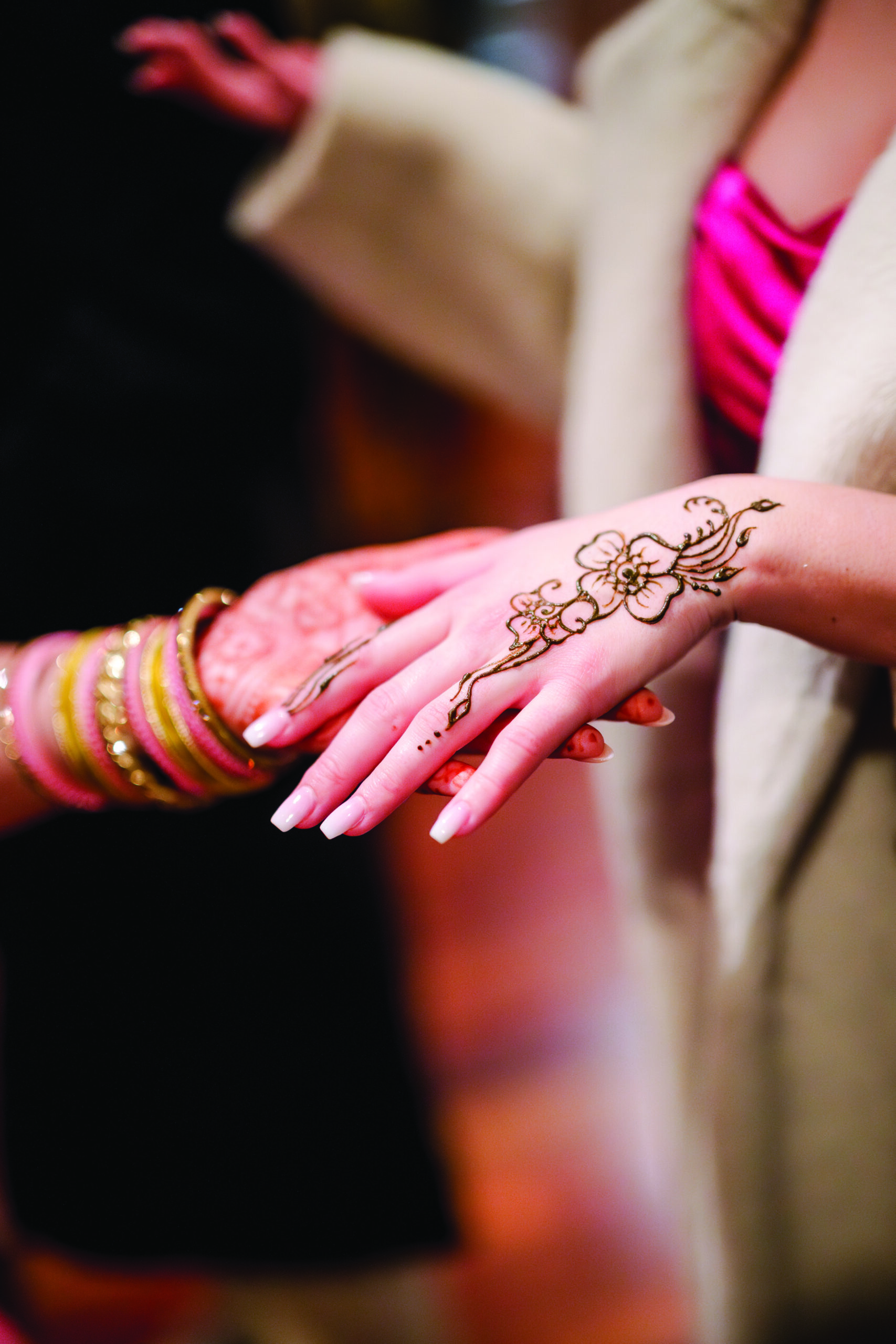 That evening, guests gathered for the Mehendi, a vibrant night filled with Indian music, fragrant cuisine from Nirvana Indian Cuisine, and intricate henna artistry by New Orleans Henna. “Any ladies who wanted to receive henna at this event were welcomed to,” shares Athena. Her own hands and feet were covered in elaborate patterns, a reflection of her Indian heritage and the beauty of the traditions she grew up with.