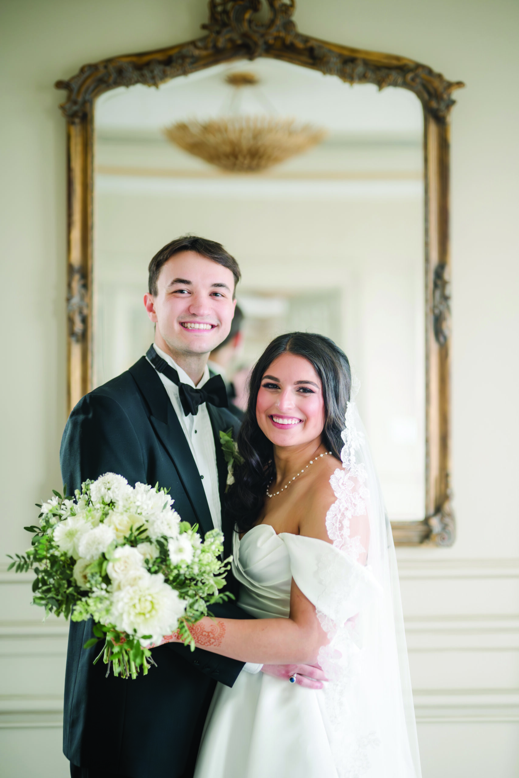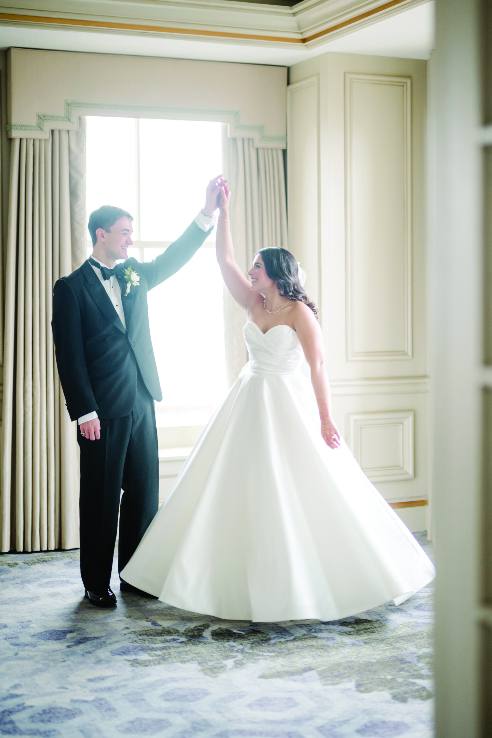 Before the festivities, Athena and Brian shared private vows, then began celebrating with a welcome brunch at The Chicory, where Athena wore her white bridal gown. Her bridesmaids, dressed in varying shades of blue as her “something blue,” stood out against a backdrop of traditional New Orleans fare and brunch-style cocktails. The mothers of the bride and groom coordinated in floral gowns of red and blue, while guests enjoyed one of the couple’s favorite regional traditions, a Pittsburgh Cookie Table organized by Brian’s parents. “The cookies were a hit and were completely gone by the end of the event! ,” Athena says.