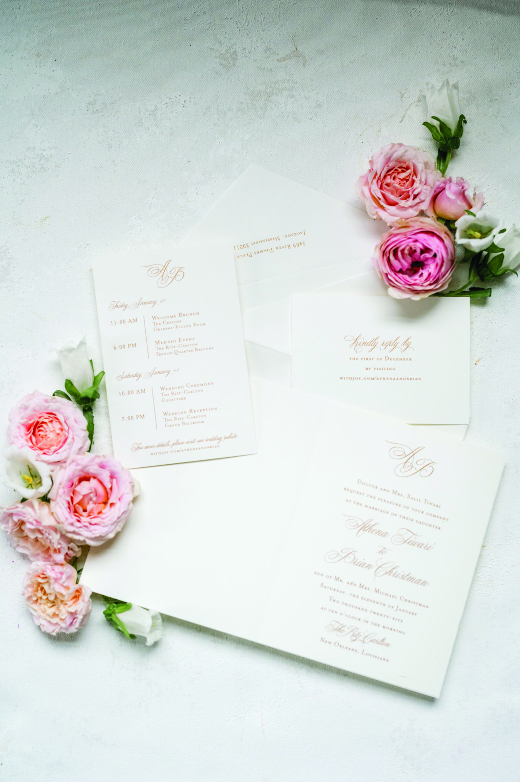 WELCOME BRUNCH: The Chicory | OFFICIANT: Salil Tiwari | BRIDAL ATTIRE: The Bridal Path + Nazranaa + Miss India, NJ | GROOM/GROOMSMEN ATTIRE: Nazranaa | PHOTOGRAPHER: Catherine Guidry Photography | CONTENT CREATOR: Day of Bestie | FLORIST: Elle Floral Design | COOKIE TABLE: Angelo Brocato | CEREMONY MUSIC: Band: Kinfolk Jazz Band Trio + DJ: Aaron Lane Professional DJ Entertainment | RECEPTION ENTERTAINMENT: Aaron Lane Professional DJ Entertainment | MAKEUP: Kristen Noel Makeup | HONEYMOON: Italy | WEDDING PLANNER/DESIGNER: Iris and Oak Events | DECOR RENTALS + LIGHTING: Luminous Events | LINENS: BJJ La Tavola | INVITATIONS: Fresh Ink | HENNA: New Orleans Henna