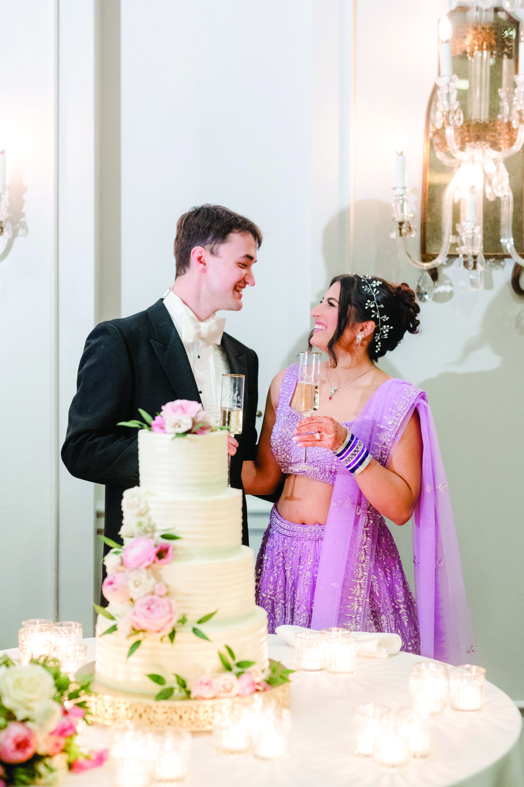 For the reception, Athena changed into a lilac lehenga from Miss India, NJ, while Brian donned a classic tuxedo. Their wedding party made unforgettable entrances, the groomsmen bursting in to “It’s Raining Men” and the bridesmaids strutting to “Ayy Ladies,” before the couple shared their first dance to “Give Me Your Worst” by Matt Howard. Dinner featured Indian cuisine from Namaste Indian Cuisine, and DJ Aaron Lane kept the dance floor full with an energetic mix of American and Indian hits.